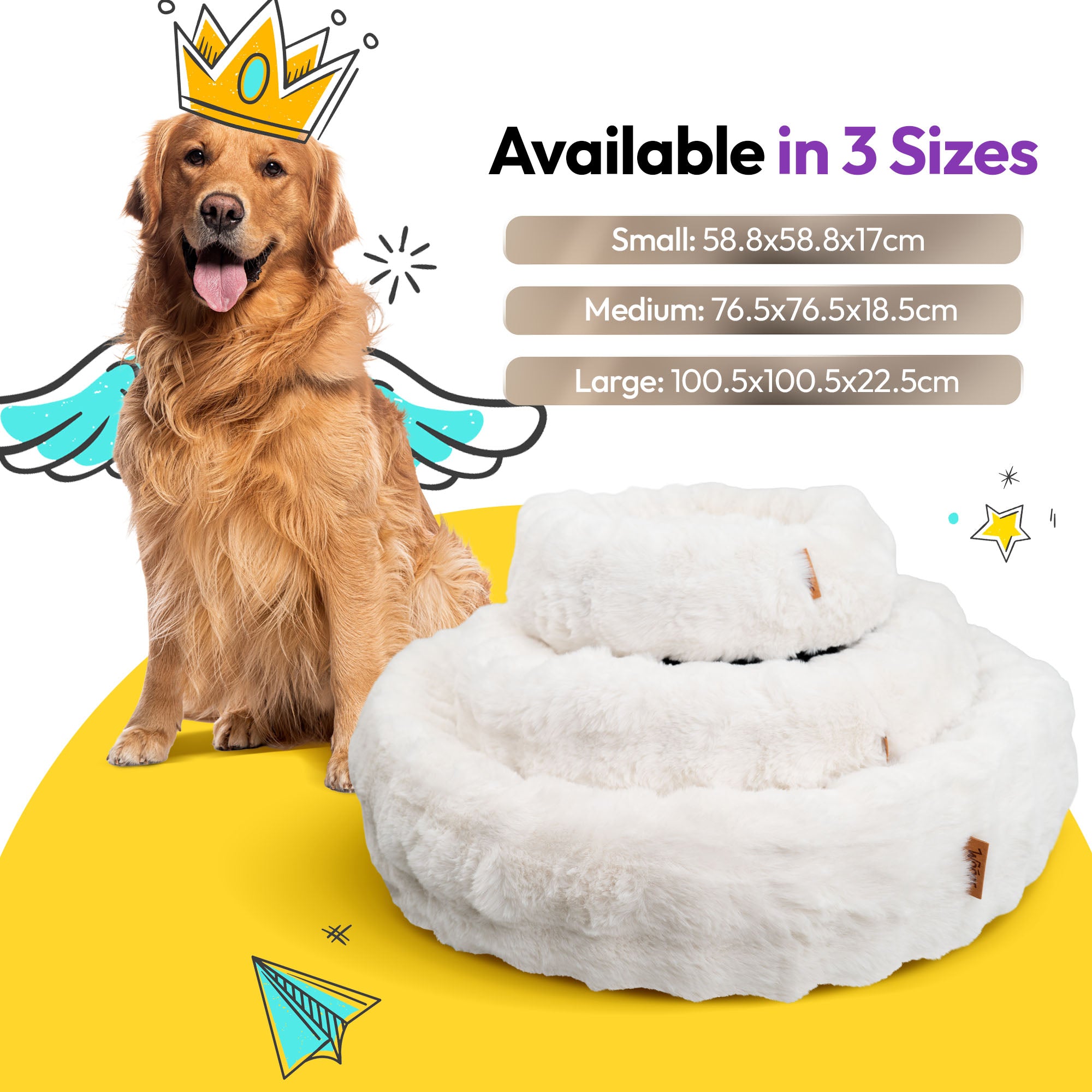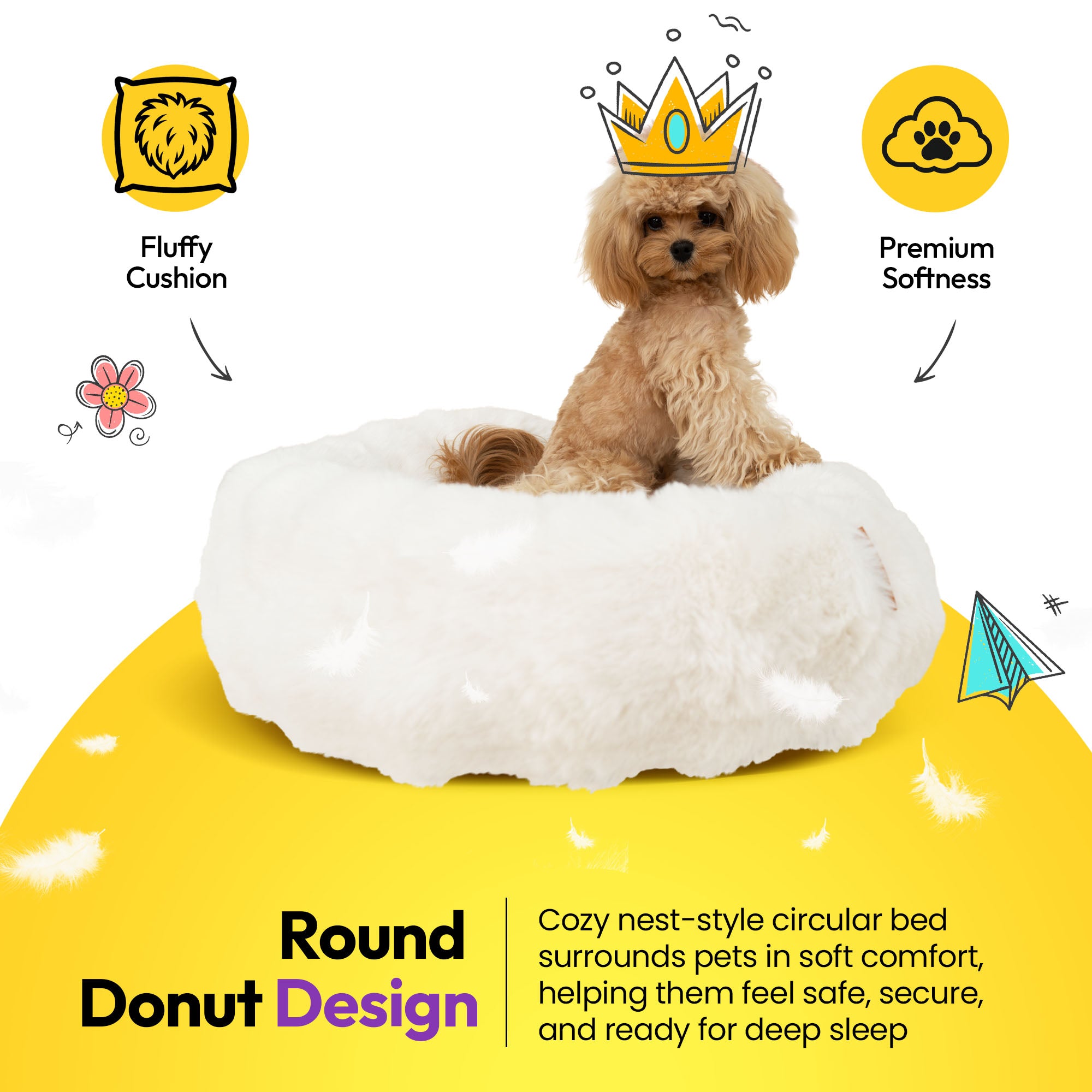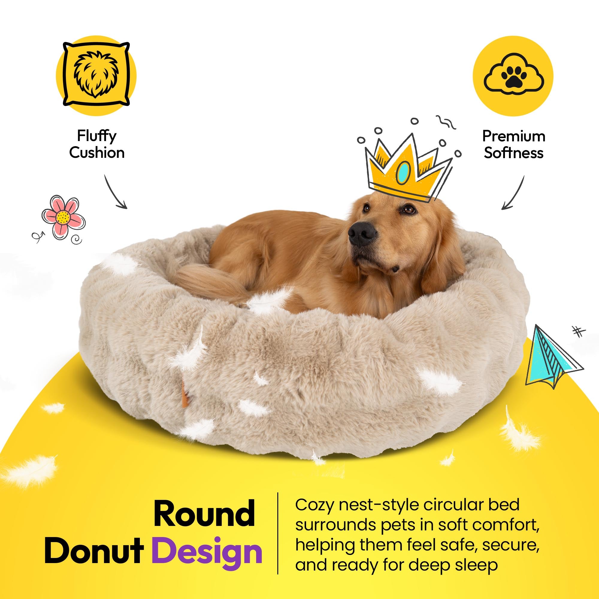Weiche, erhöhte Randwände bieten Kopf- & Nackenstütze, während die geschwungene, pelzige Oberfläche eine sichere, beruhigende Umgebung schafft.