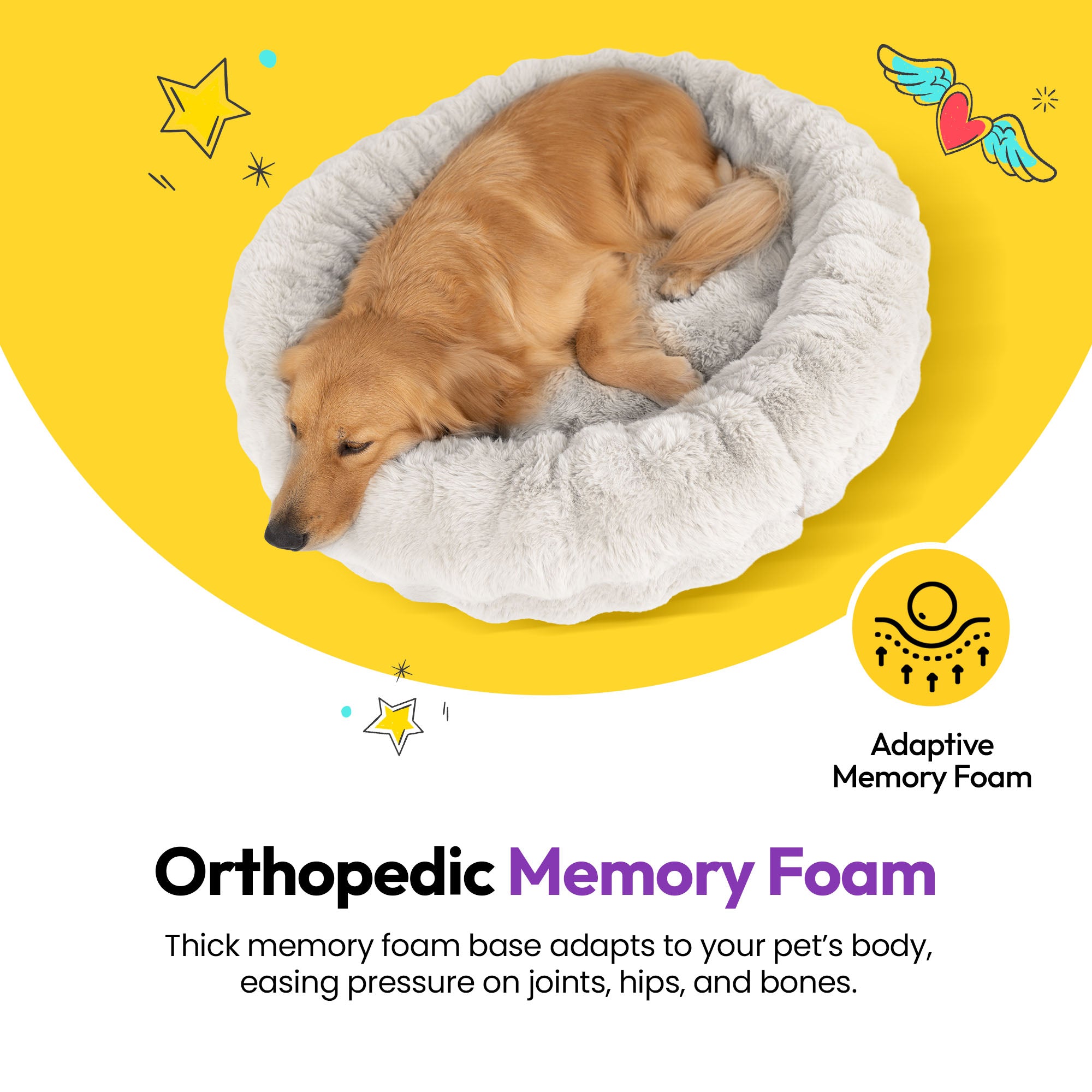 Eine dicke orthopädische Memory-Schaum-Basis passt sich der Körperform Ihres Tieres an und entlastet Gelenke, Hüften und Knochen. Das macht das Bett besonders vorteilhaft für ältere Tiere, Genesende und solche, die zu Steifheit oder Angst neigen.