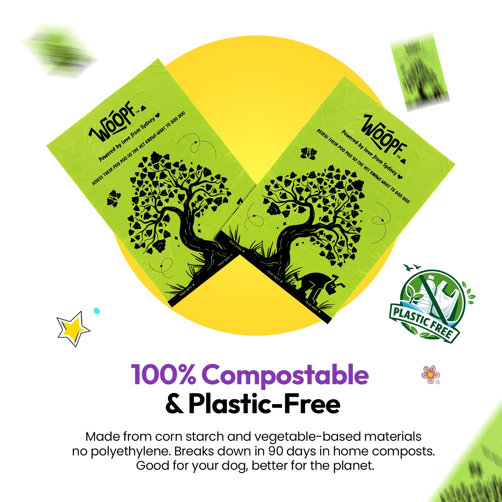 💩 WOOPF™ Poop & Go 100% Compostable Dog Poop Bags – Plant-Based, Plastic-Free & Leak-Proof 🐾