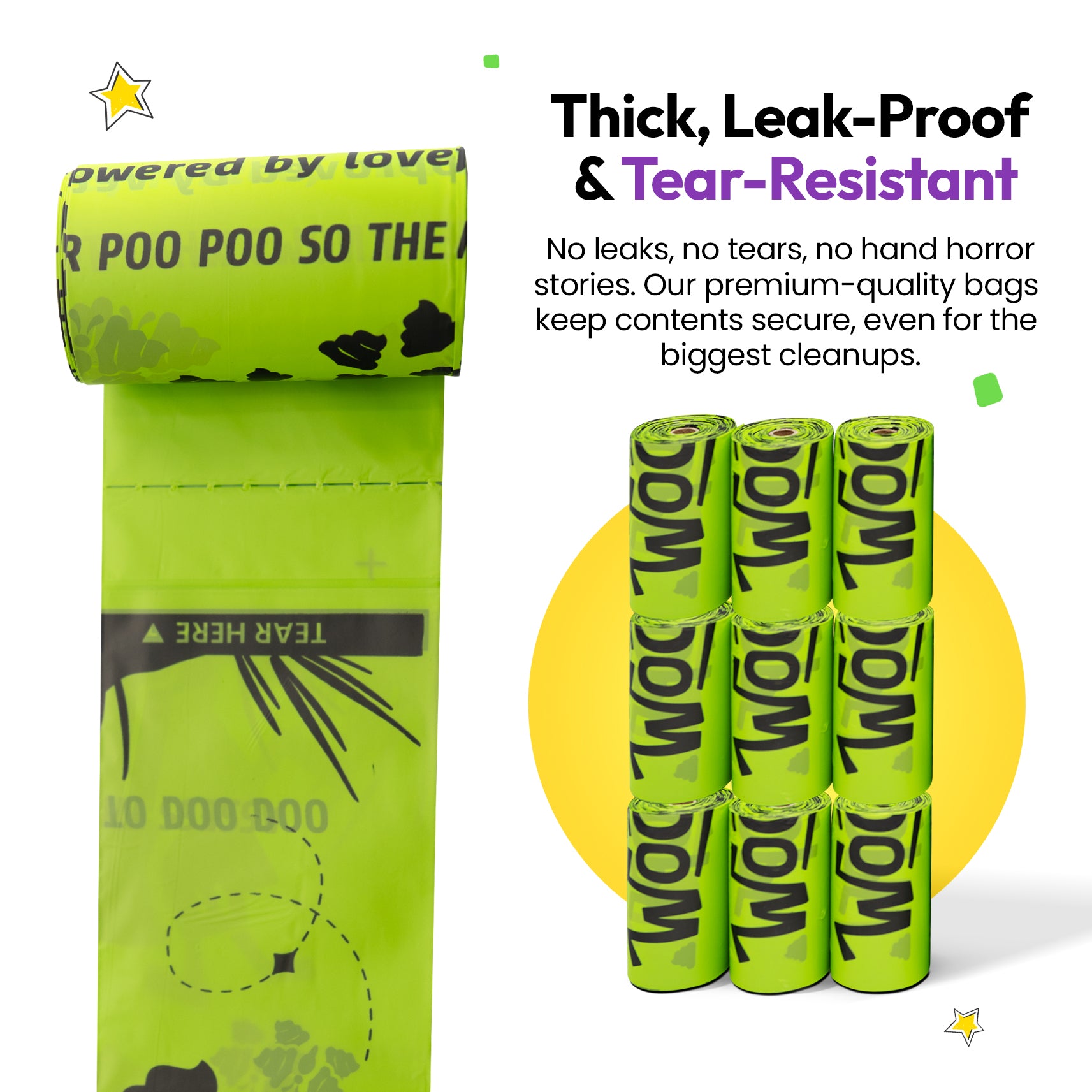 Upgrade your walk routine with WOOPF™ Poop & Go — 100% compostable dog poop bags made from plant-based materials and designed for strong, leak-proof performance.