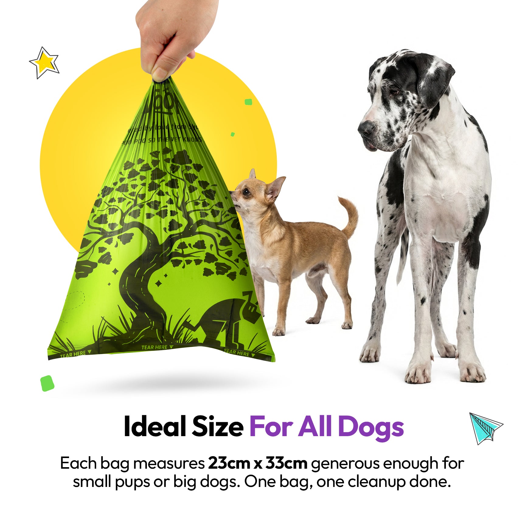 A truly plant-based dog waste bag solution.