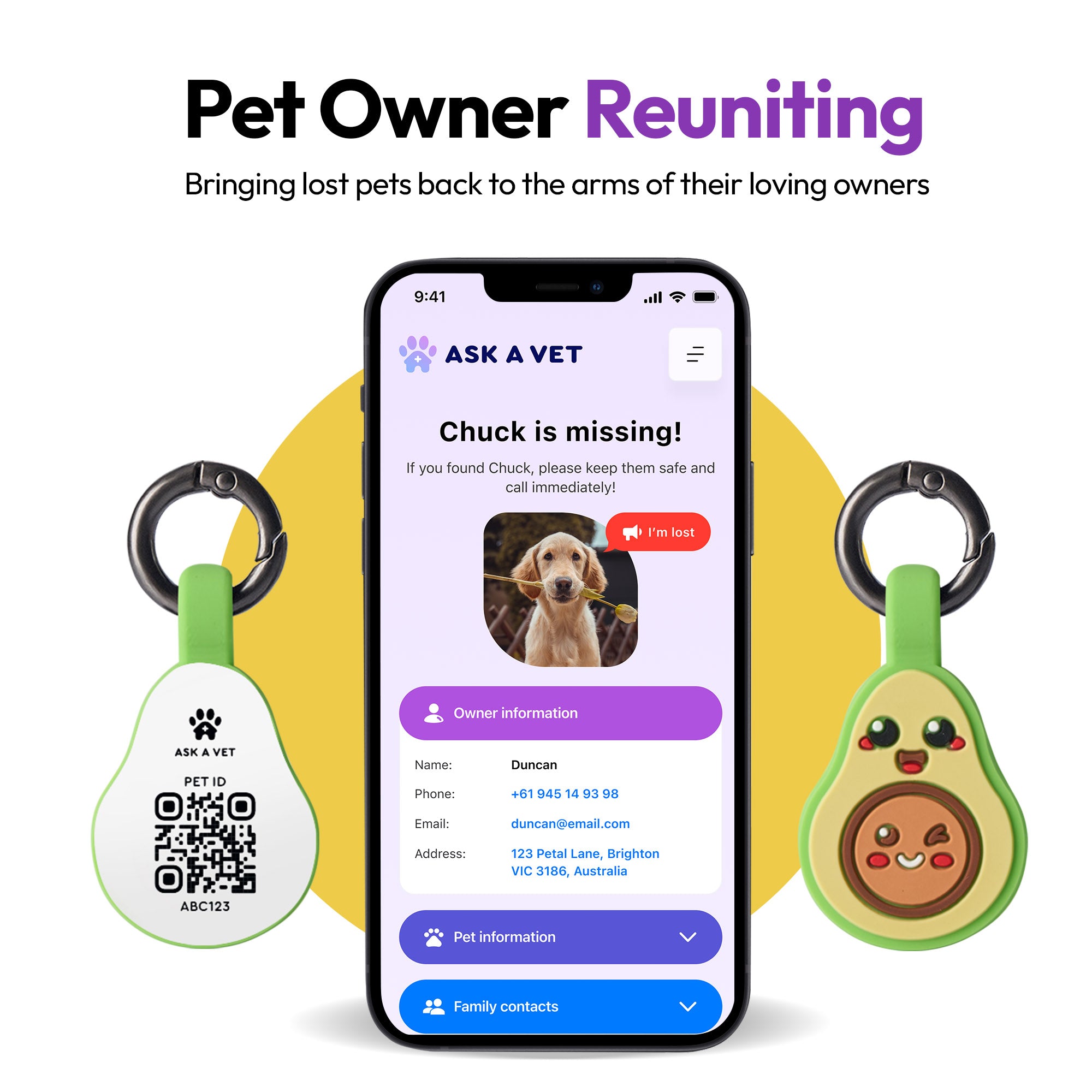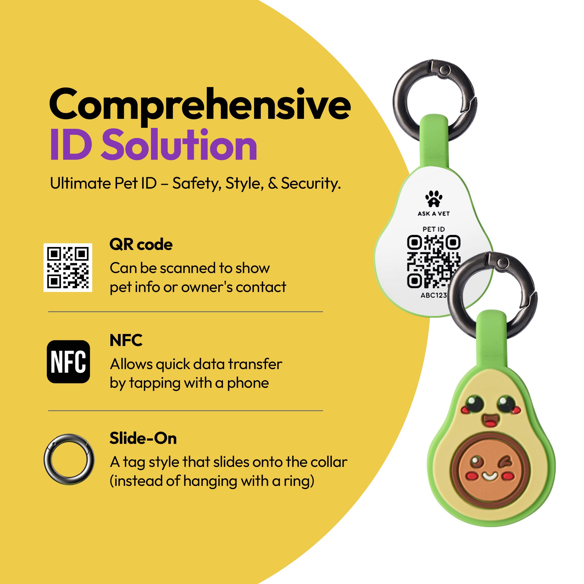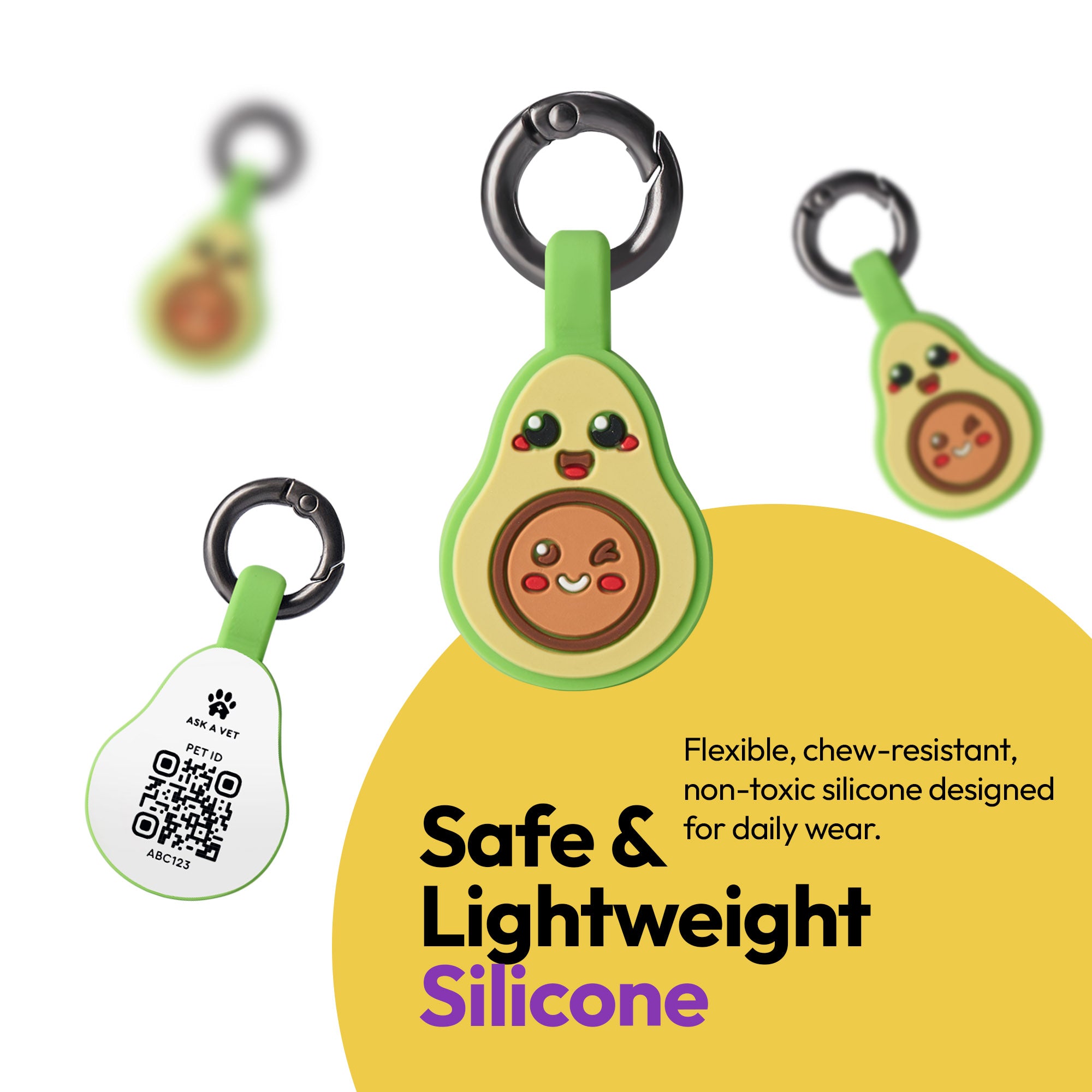 Add a pop of fun and safety to your pet’s collar with the ASK A VET Avocado Smart NFC & QR Code Pet ID Tag – a playful design that combines cuteness with cutting-edge technology.