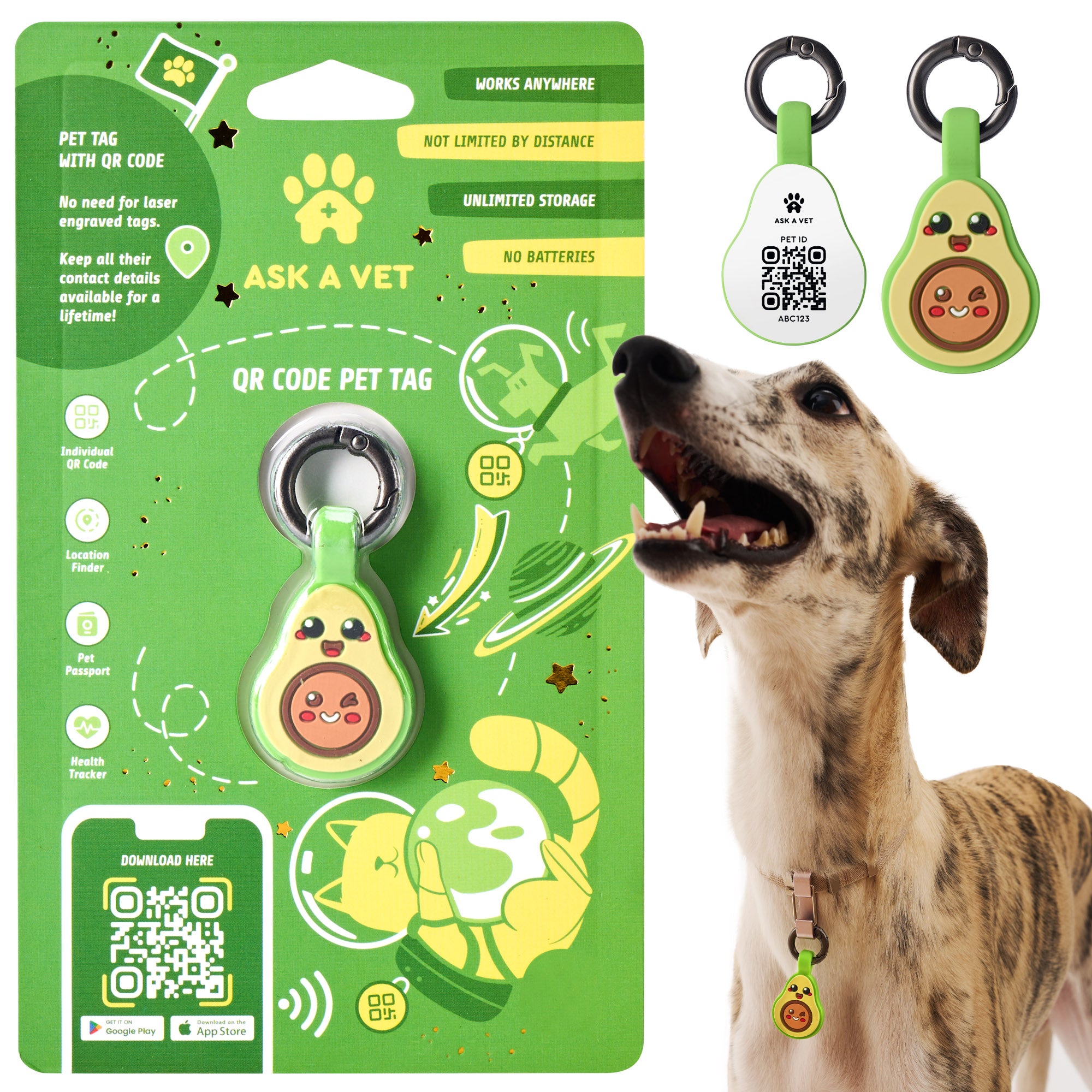 ASK A VET Avocado Pet ID Tag – NFC & QR Code Silicone Dog & Cat Tag – Hanging & Slide-On Digital Smart Tag – Waterproof, No Battery