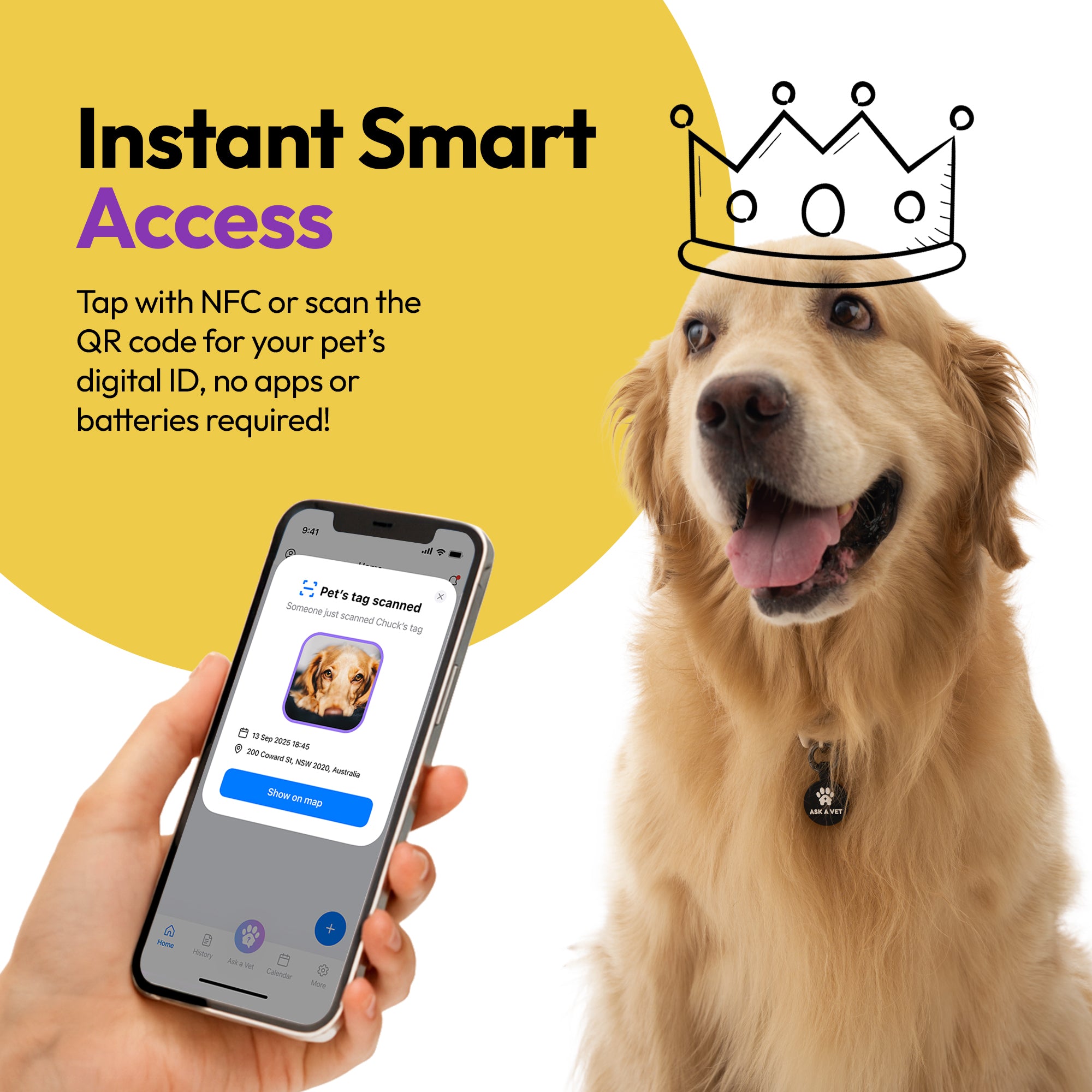- 📱 Digital Pet ID: Tap or scan for instant access to your pet’s online profile.