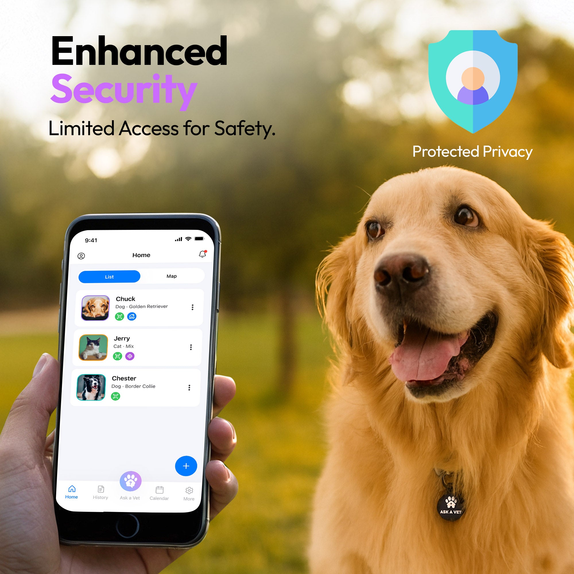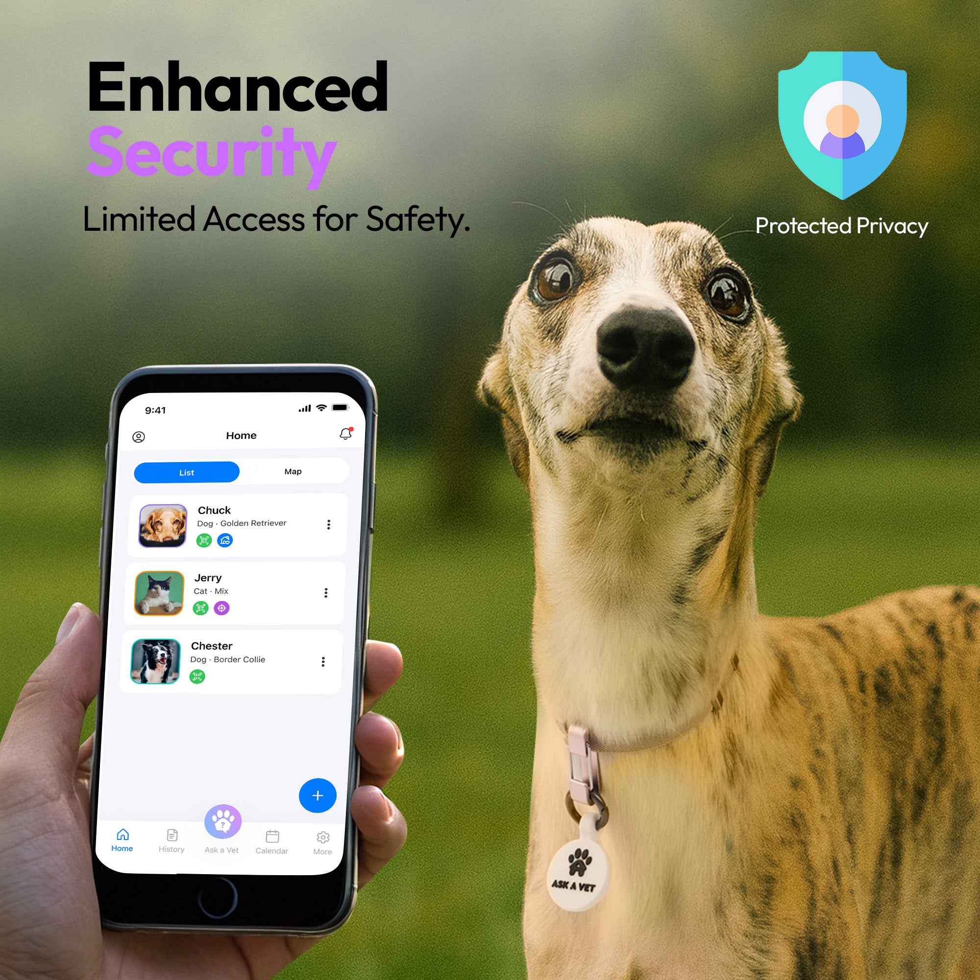 Featuring the official Ask A Vet logo, this tag is the perfect choice for pet parents who value simplicity, trust, and security.