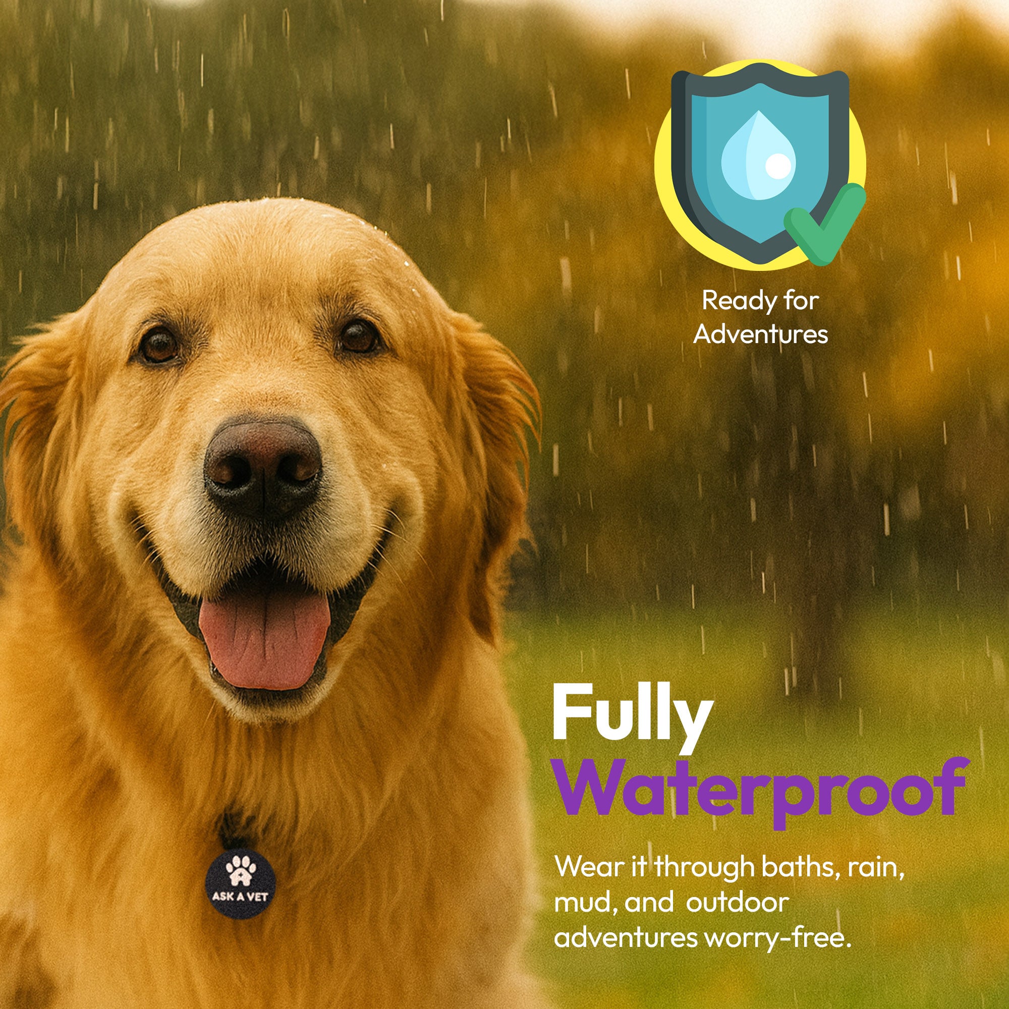Classic style. Trusted protection. With the ASK A VET Logo Tag, your pet carries safety, reliability, and professional design on every adventure.