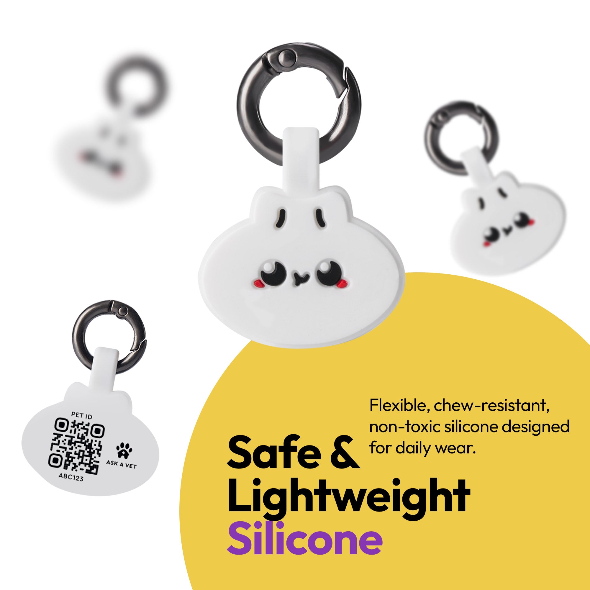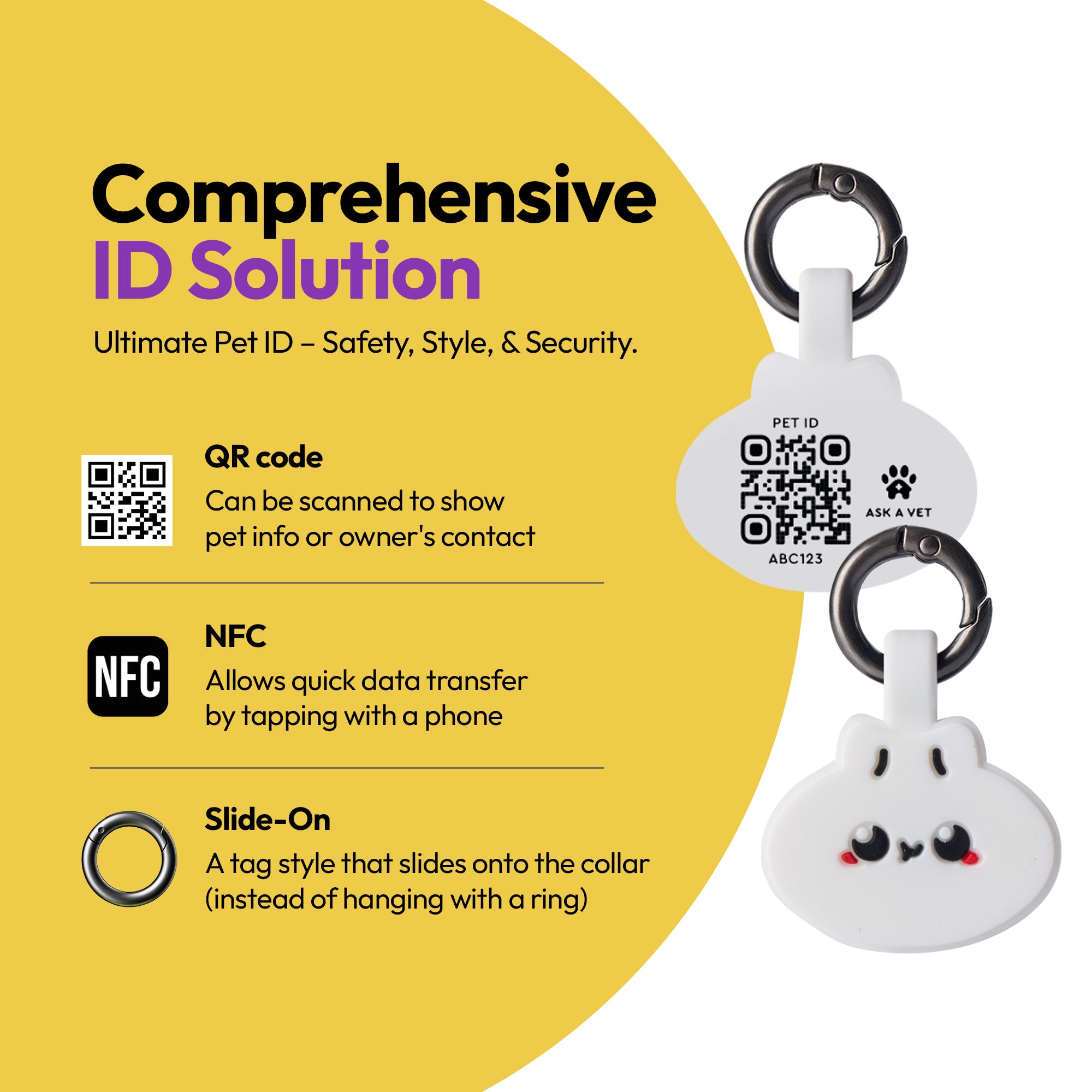 ASK A VET Dumpling Pet ID Tag – NFC & QR Code Silicone Dog & Cat Tag – Hanging & Slide-On Digital Smart Tag – Waterproof, No Battery