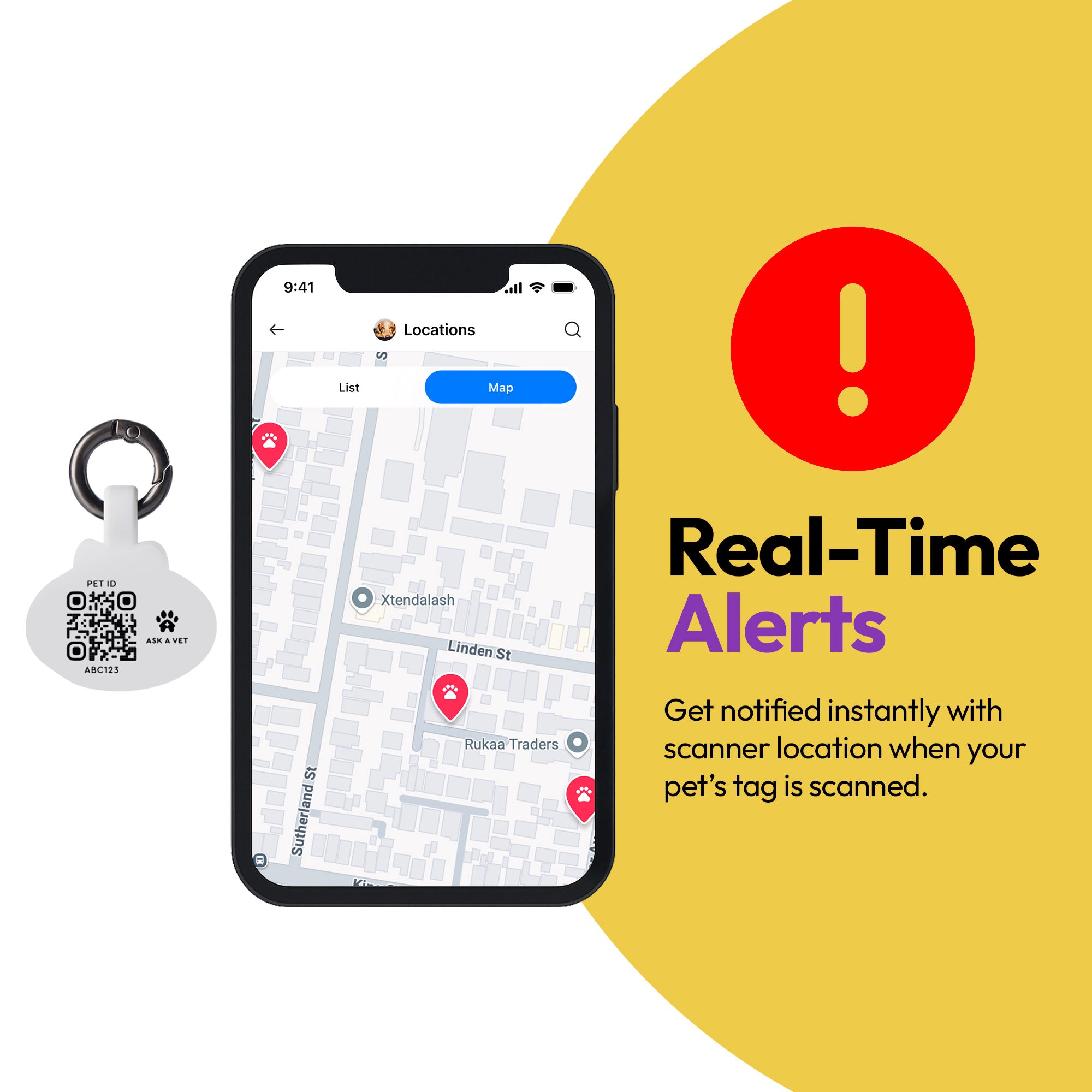 - 🚨 Real-Time Alerts: Get scan notifications with location when your pet’s tag is scanned.