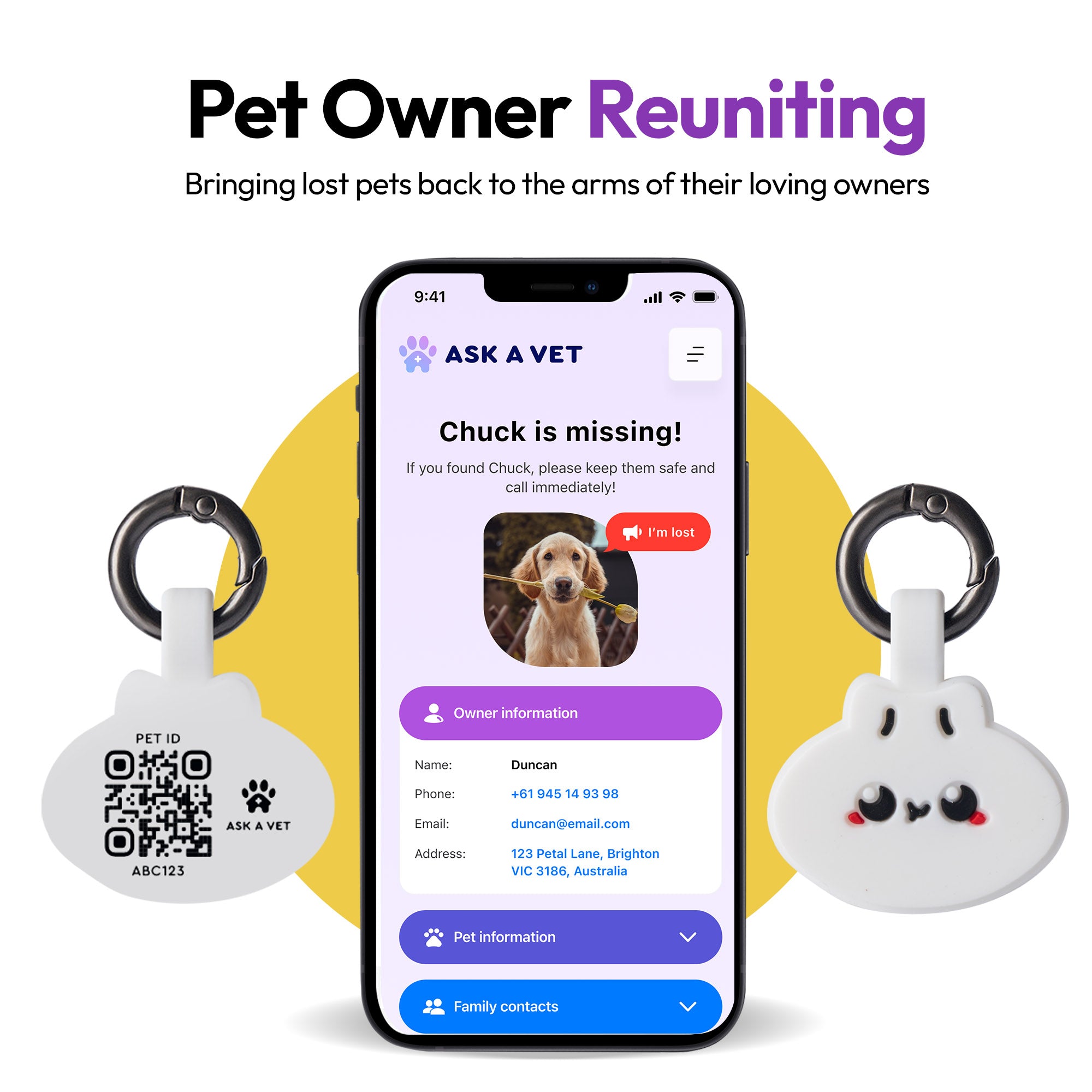 Keep your pet safe and adorable with the ASK A VET Dumpling Smart NFC & QR Code Pet ID Tag – a fun, food-inspired accessory that doubles as a smart identification tool.
