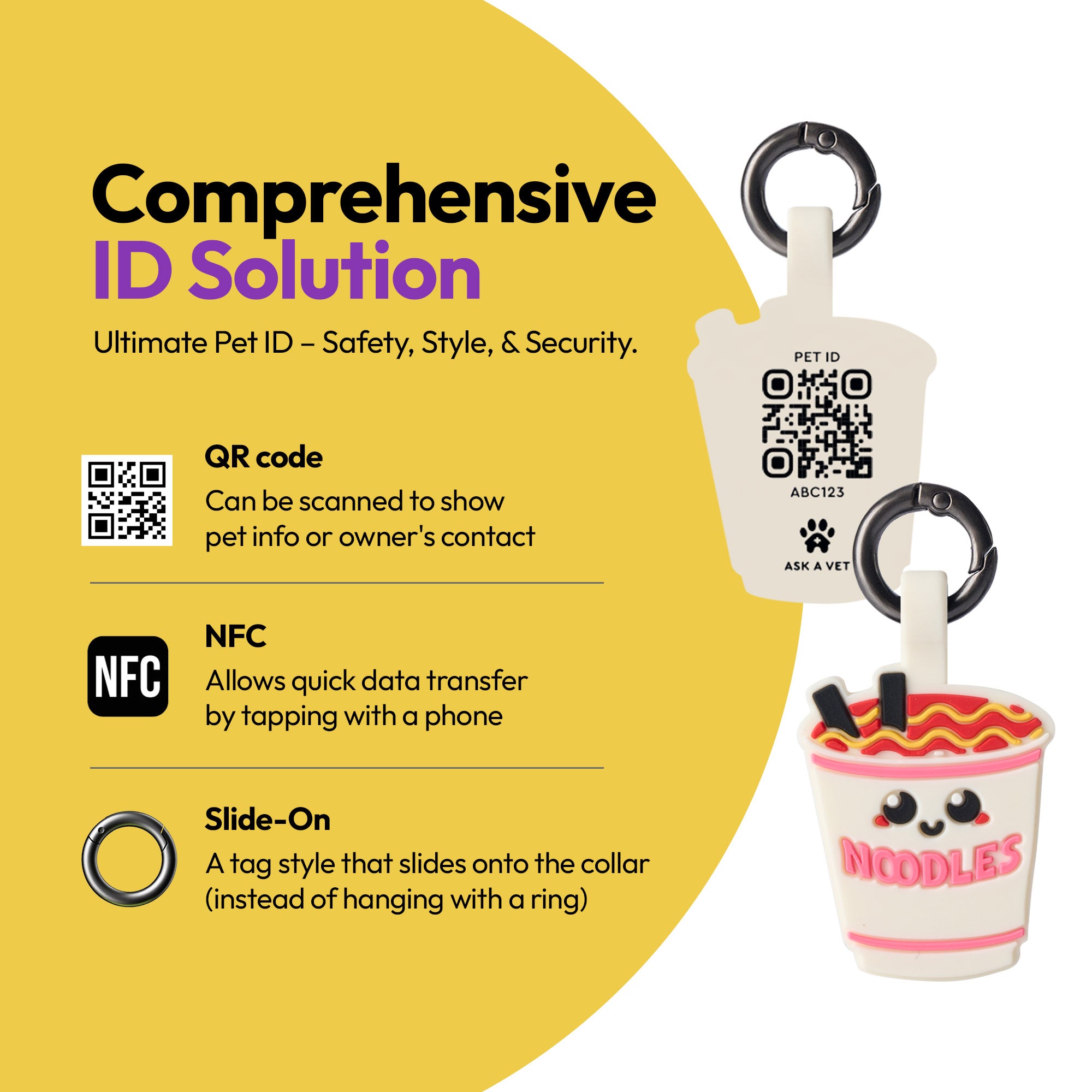 Give your pet a tasty twist of safety with the ASK A VET Noodles Smart NFC & QR Code Pet ID Tag – a playful ramen-inspired design that combines kawaii style with smart protection. This fun noodle bowl tag is perfect for food lovers and pet parents who want their furry friends to stand out while staying safe.