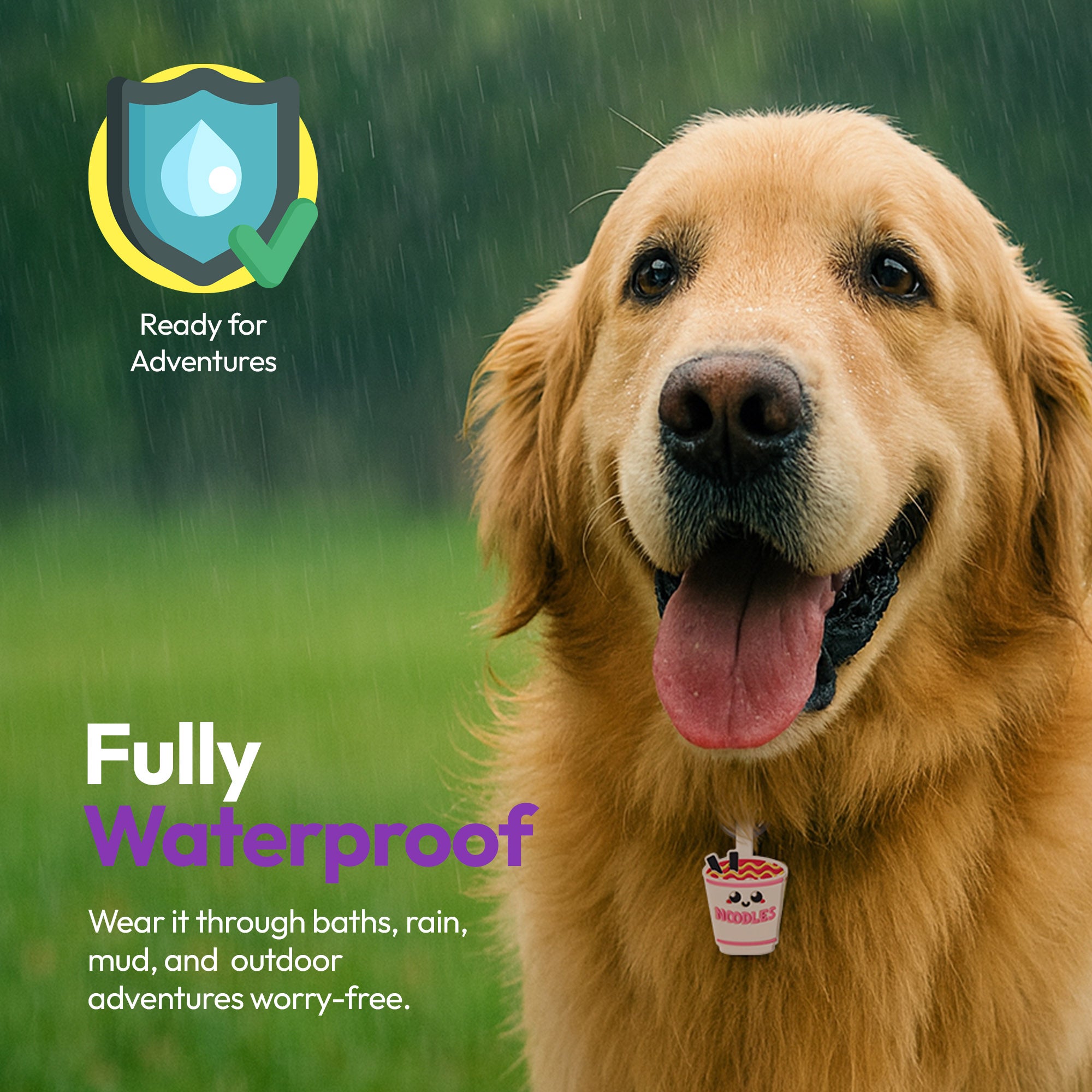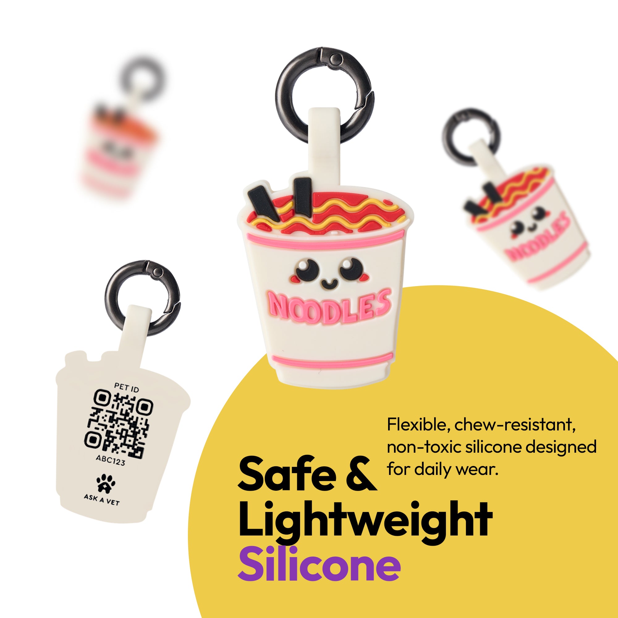 This fun noodle bowl tag is perfect for food lovers and pet parents who want their furry friends to stand out while staying safe.