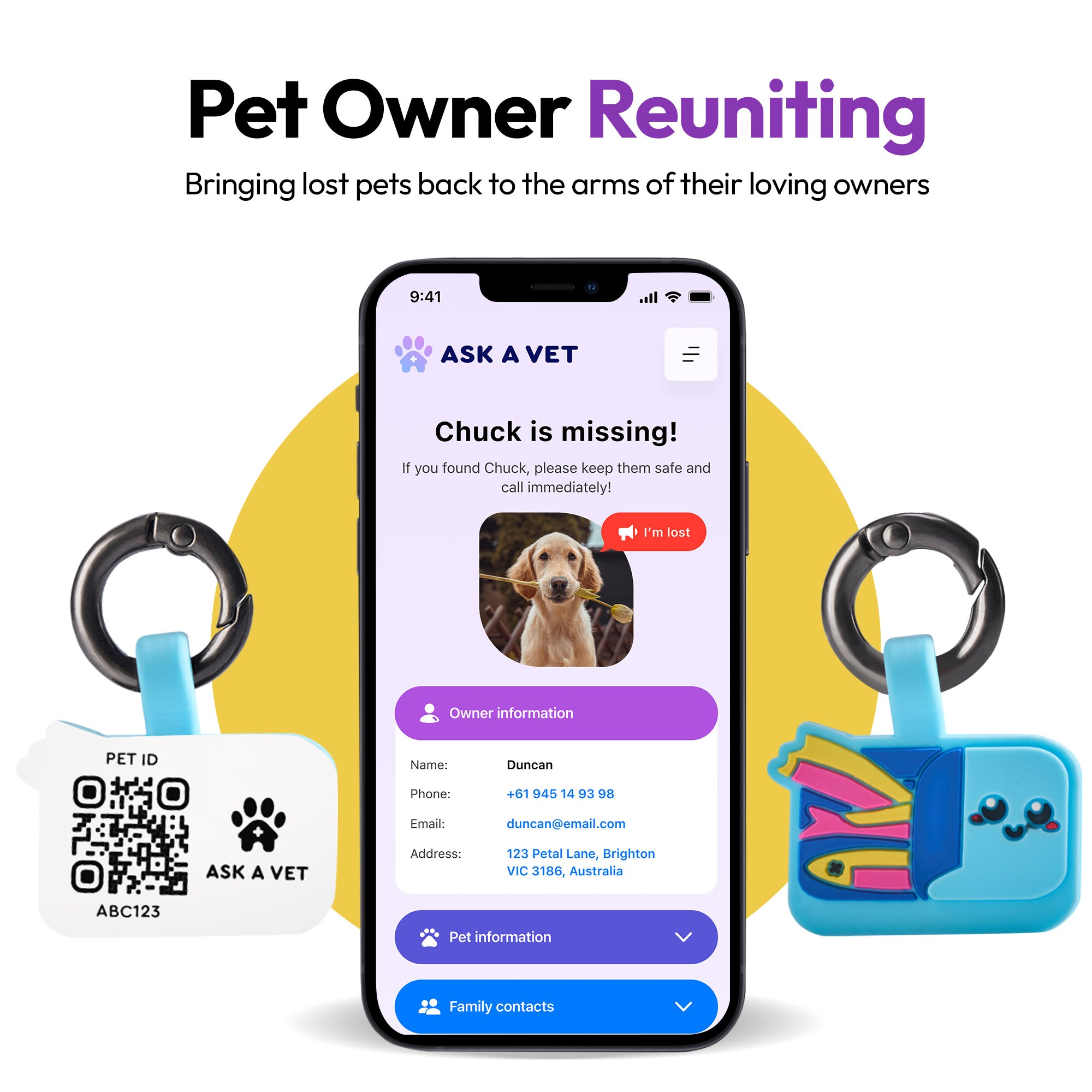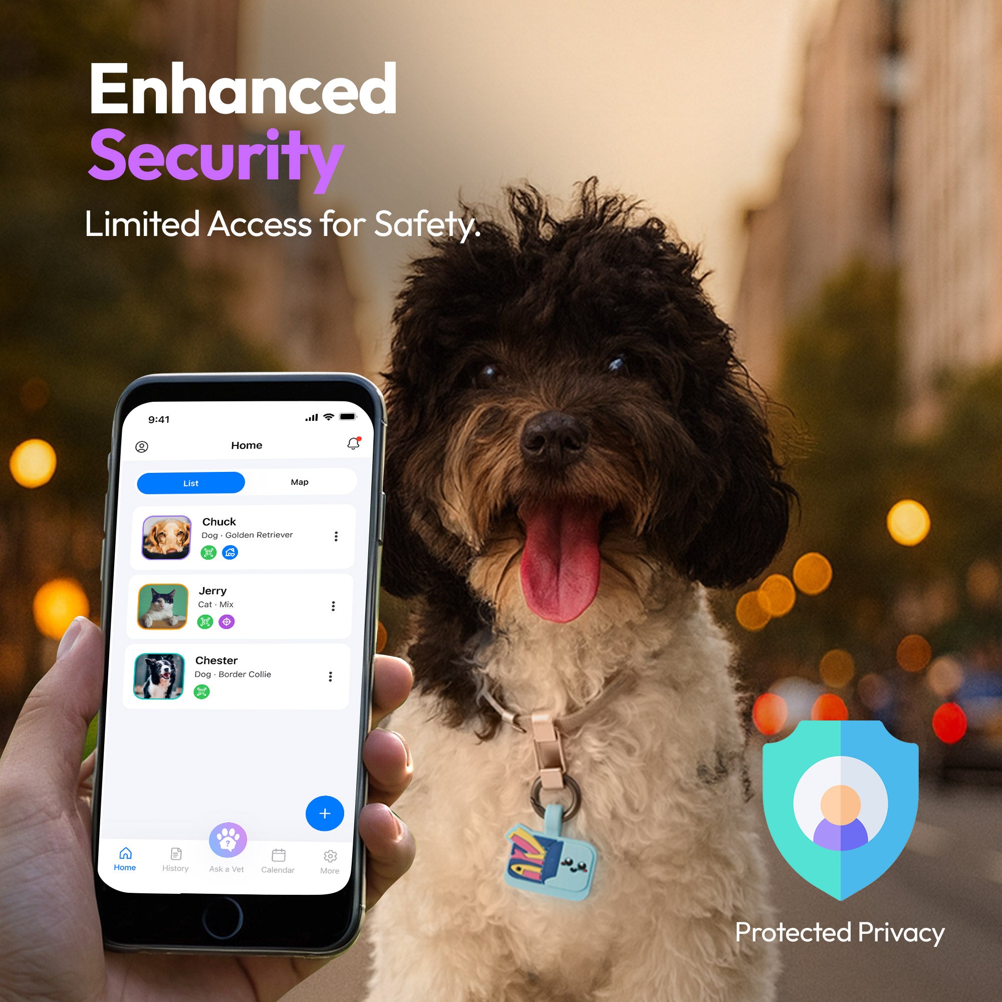 • 📱 Smart Pet ID: Online profile holds vet info, dietary notes, allergies & more.