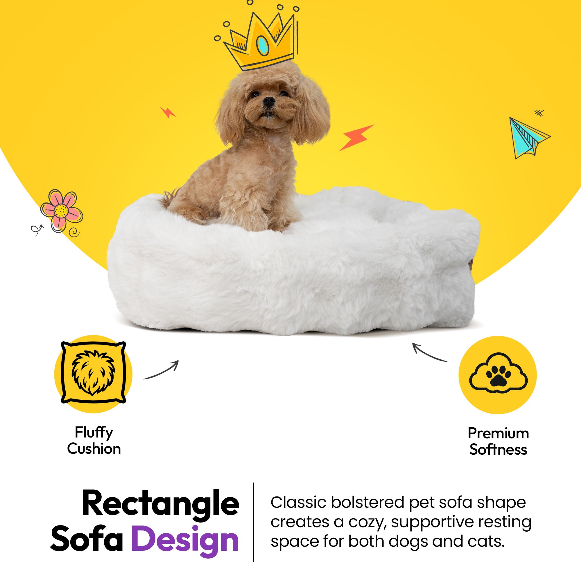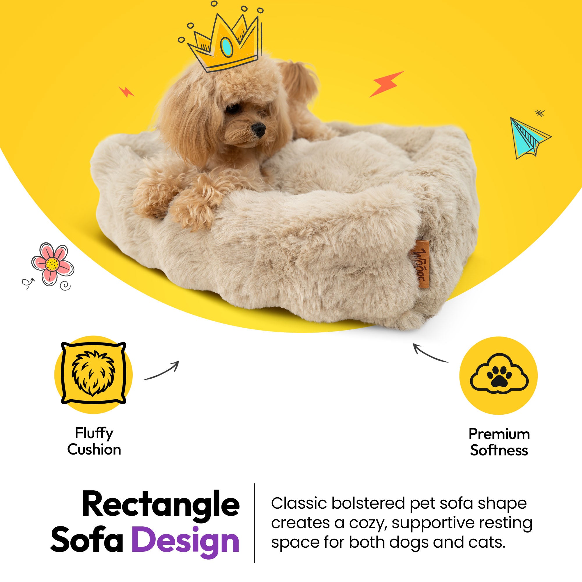 Give your pet the perfect blend of luxury comfort and orthopedic support with the WOOPF™ Furry Curves Rectangle Bed. Featuring a velvet-fur surface with soft fluffy bump texture and a supportive memory foam base, this calming sofa-style bed is built for deeper rest, better recovery, and everyday comfort for dogs and cats.