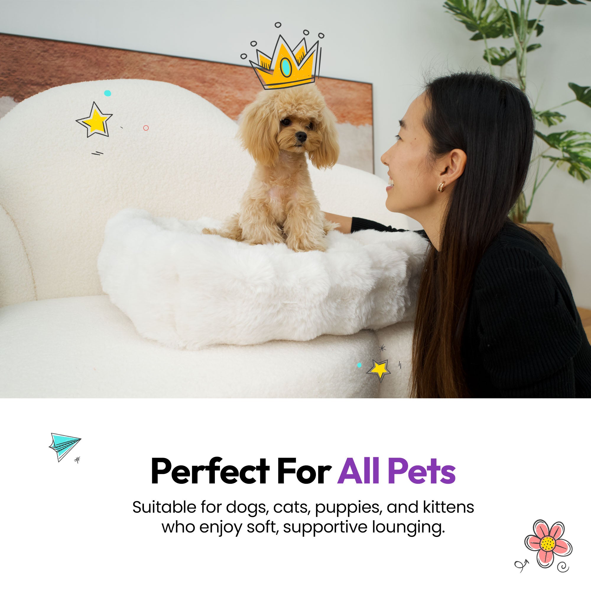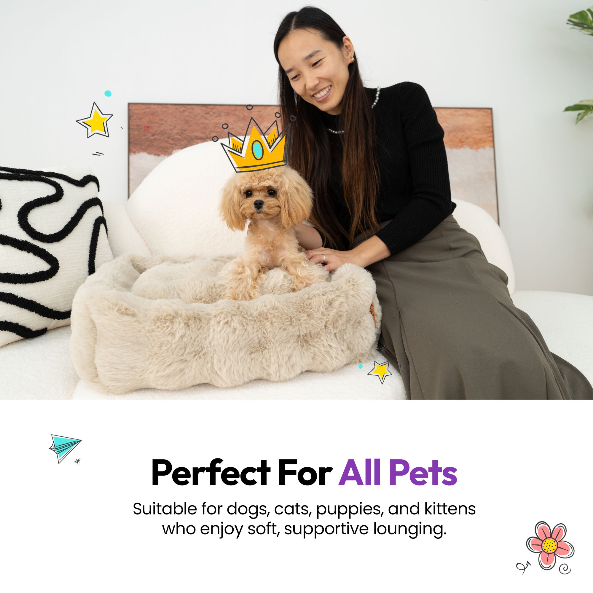 - • Warm, cozy, and gentle for sensitive pets