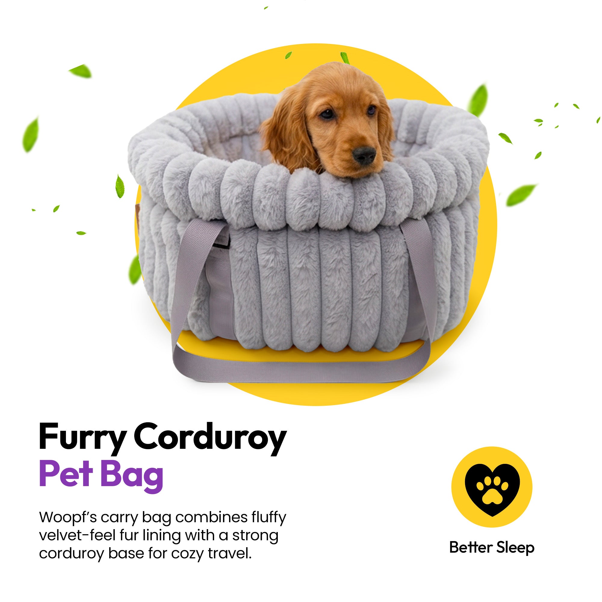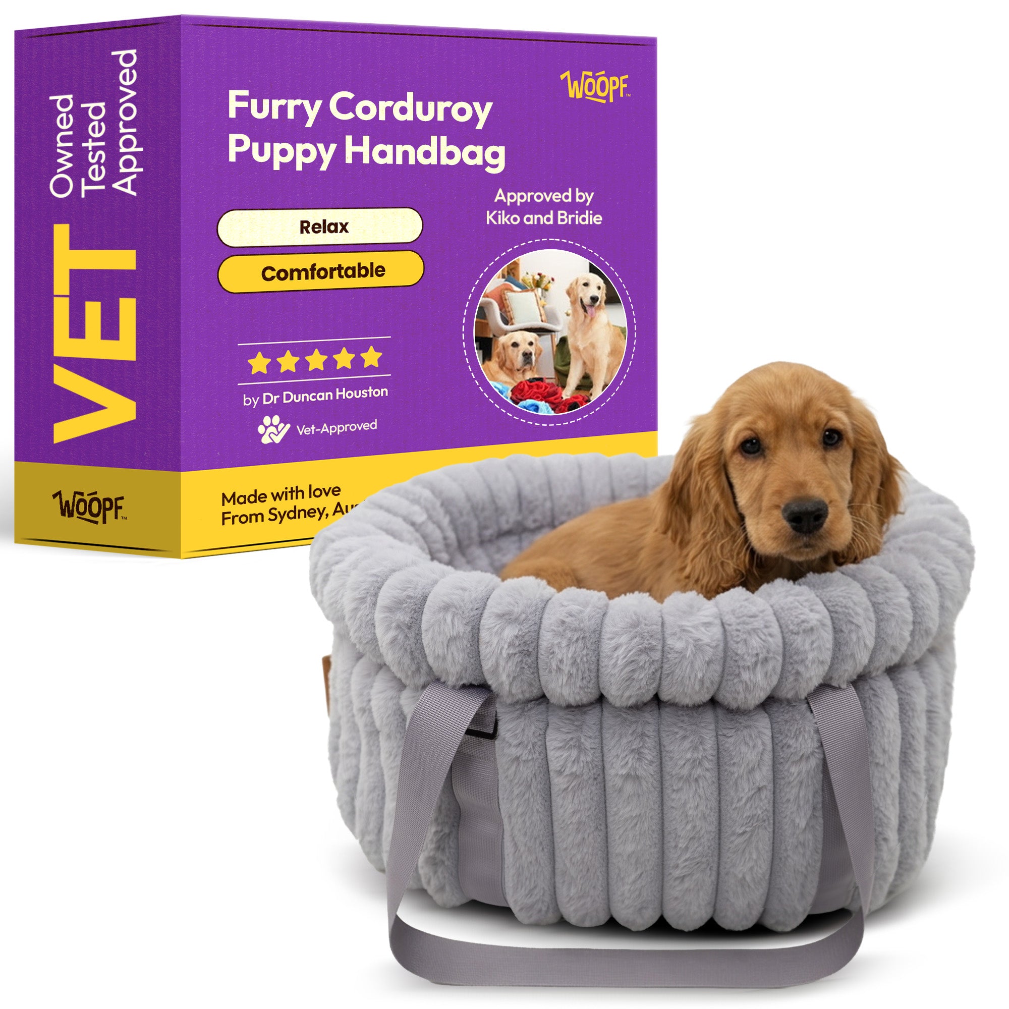 👜 WOOPF Furry Corduroy Puppy & Small Dog Carry Bag – Soft, Secure & Calming Travel Comfort 🐾