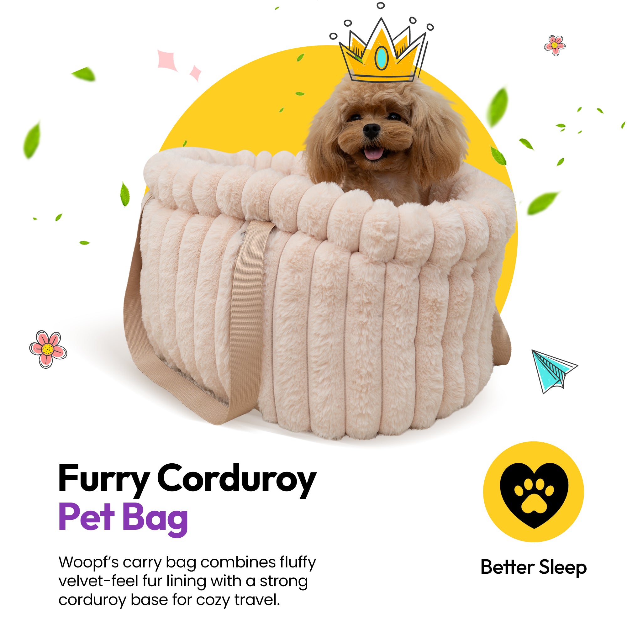 Travel in comfort and style with the WOOPF™ Furry Corduroy Carry Bag — a soft-sided small dog carrier designed for puppies, toy breeds, and cats up to 8kg.