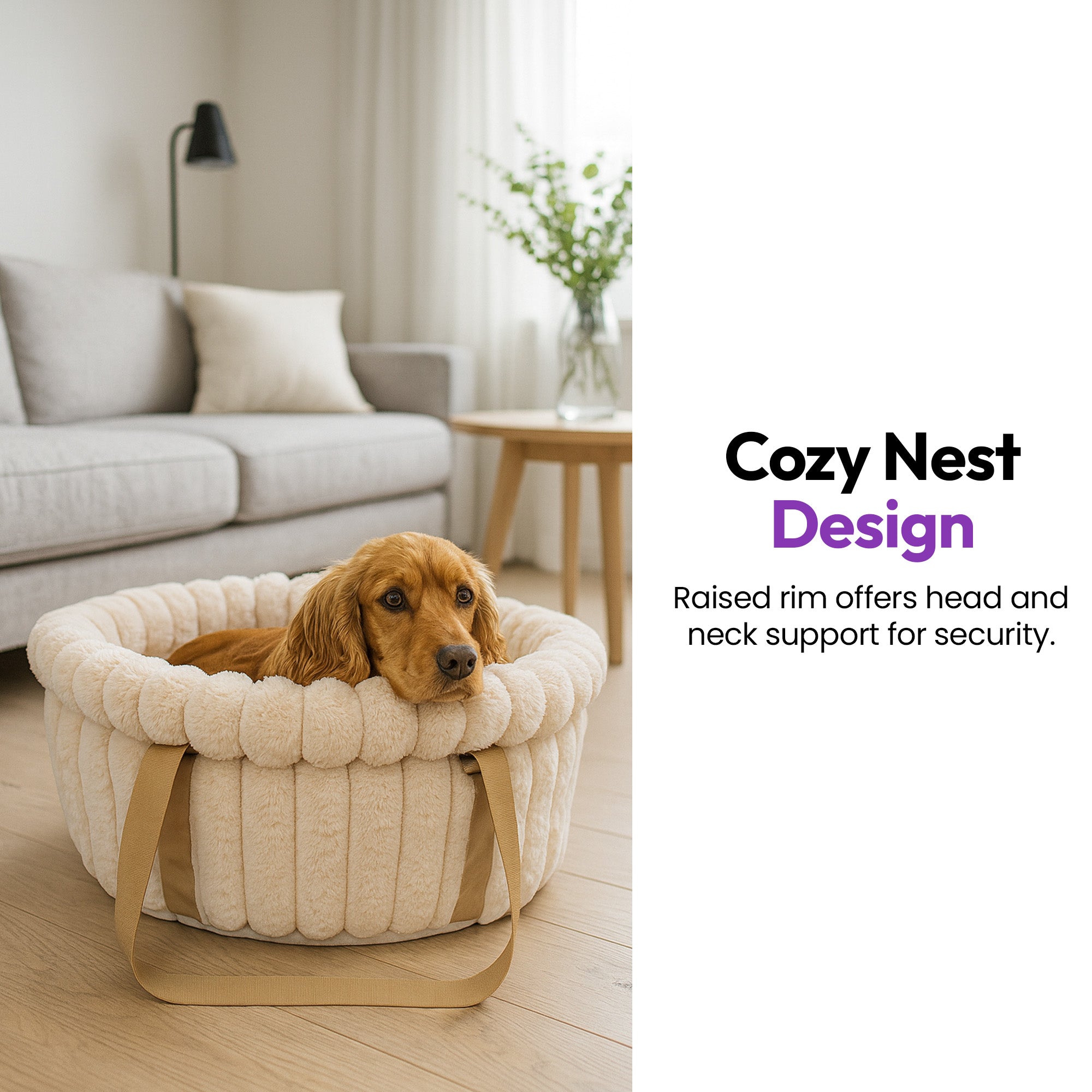 The fluffy faux-fur lining mimics the feel of a mother’s coat — helping your pet relax, feel secure, and settle during travel. Great for nervous travelers, clingy puppies, and sensitive cats. 💞