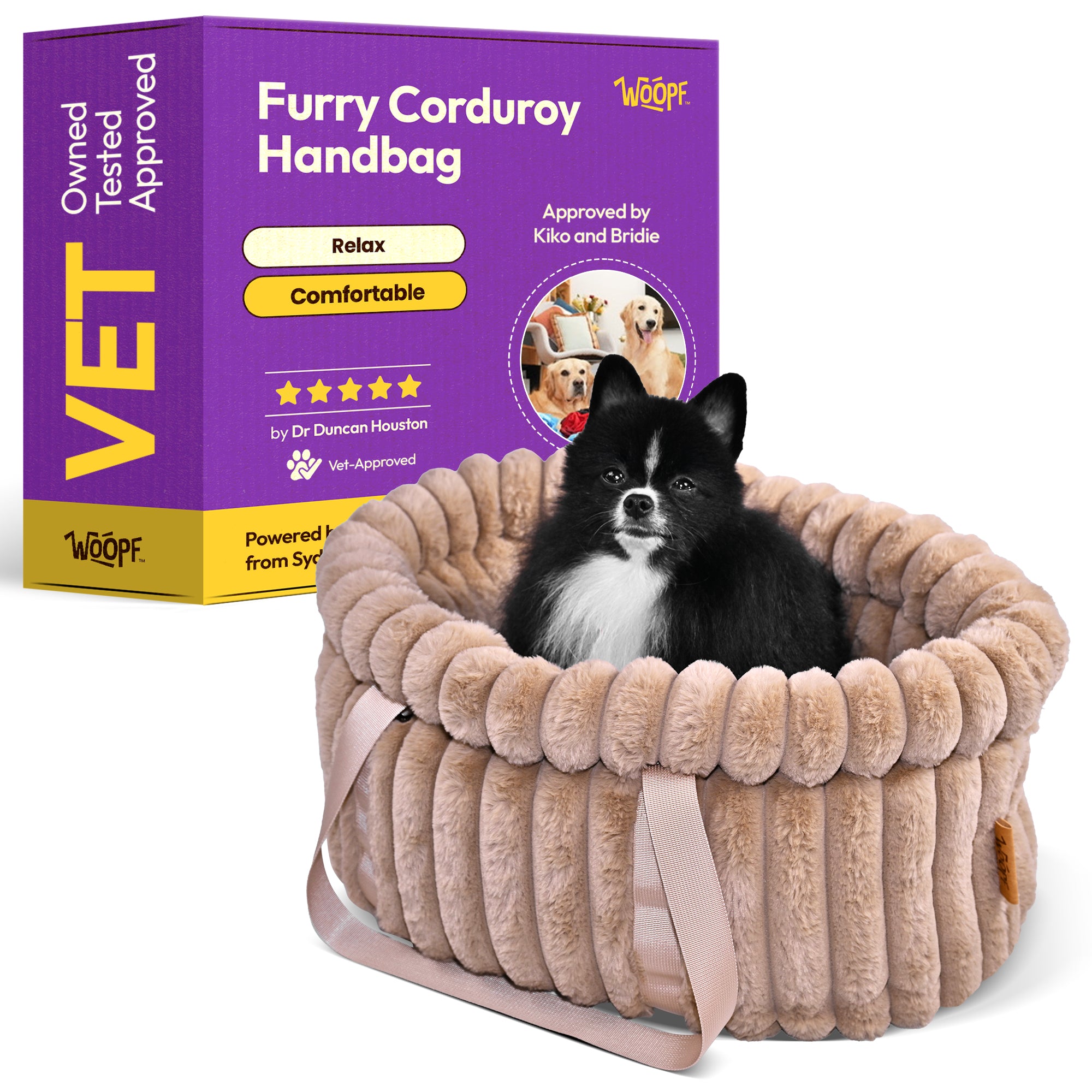 👜 WOOPF™ Furry Corduroy Puppy & Small Dog Carrier Bag – Soft Calming Pet Travel Tote (Up to 8kg) 🐾