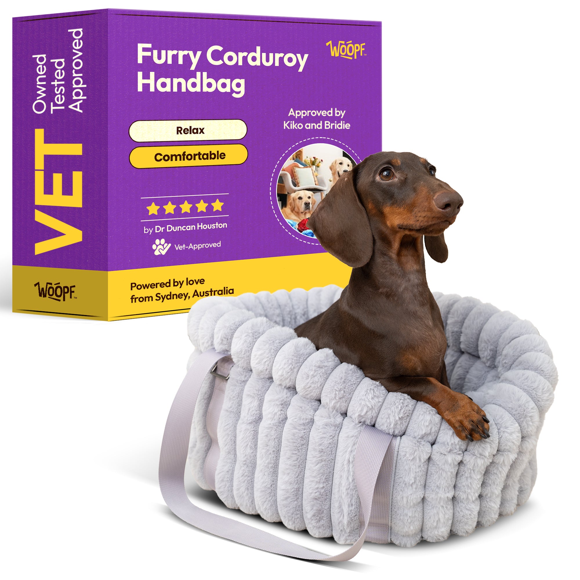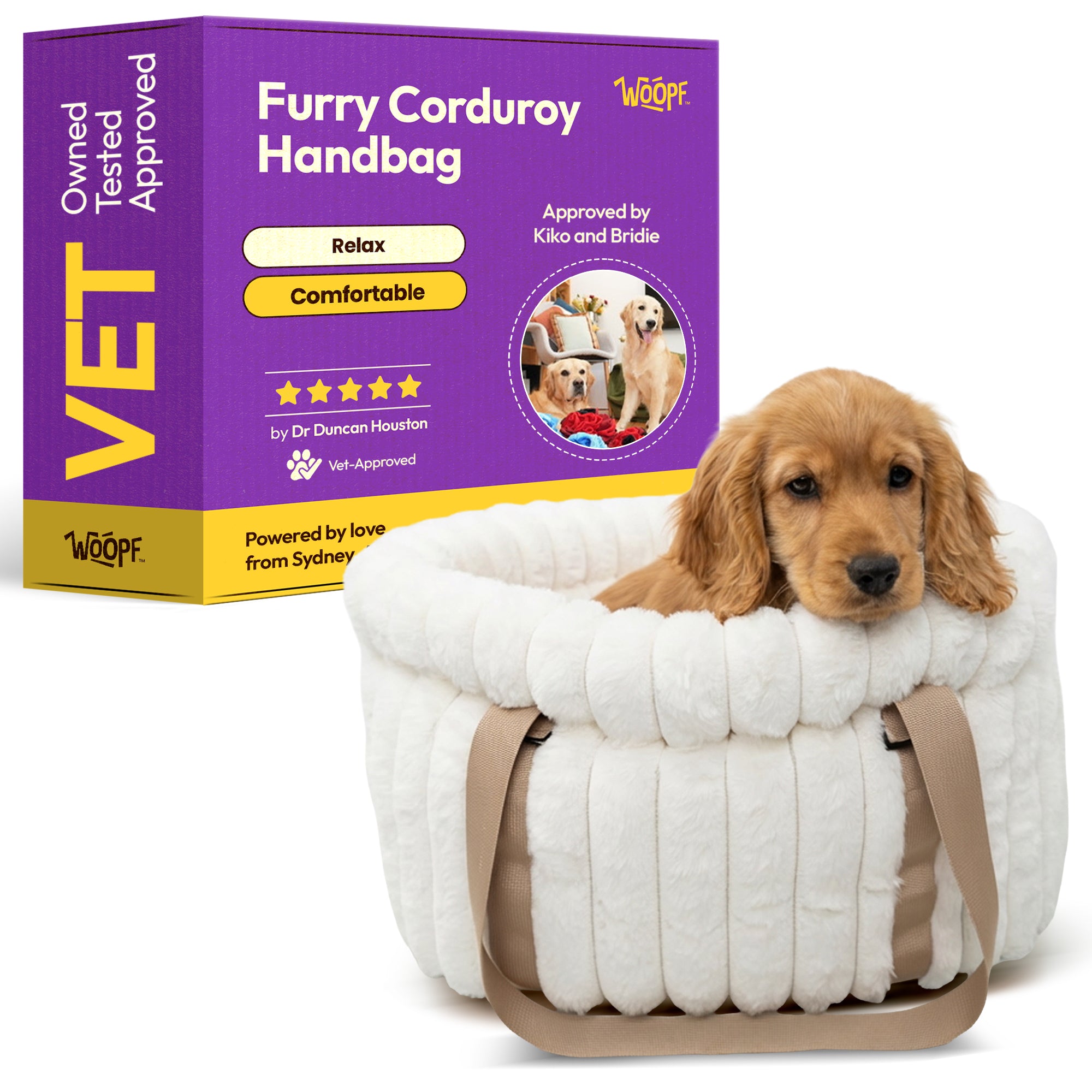 The WOOPF™ Furry Corduroy Puppy & Small Pet Carry Bag isn’t just a tote.