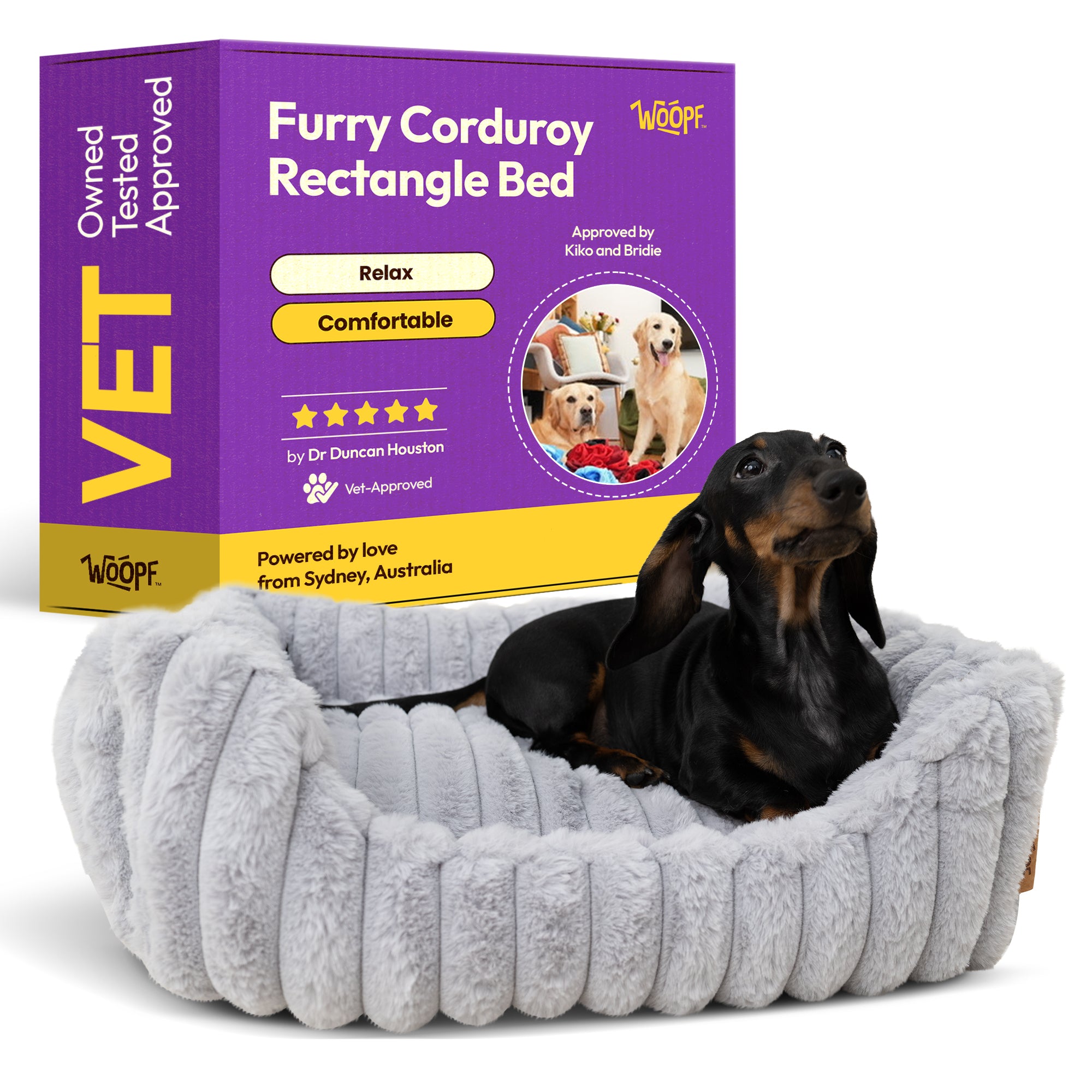 The WOOPF™ Furry Corduroy Rectangle Bed isn’t just a stylish pet sofa.