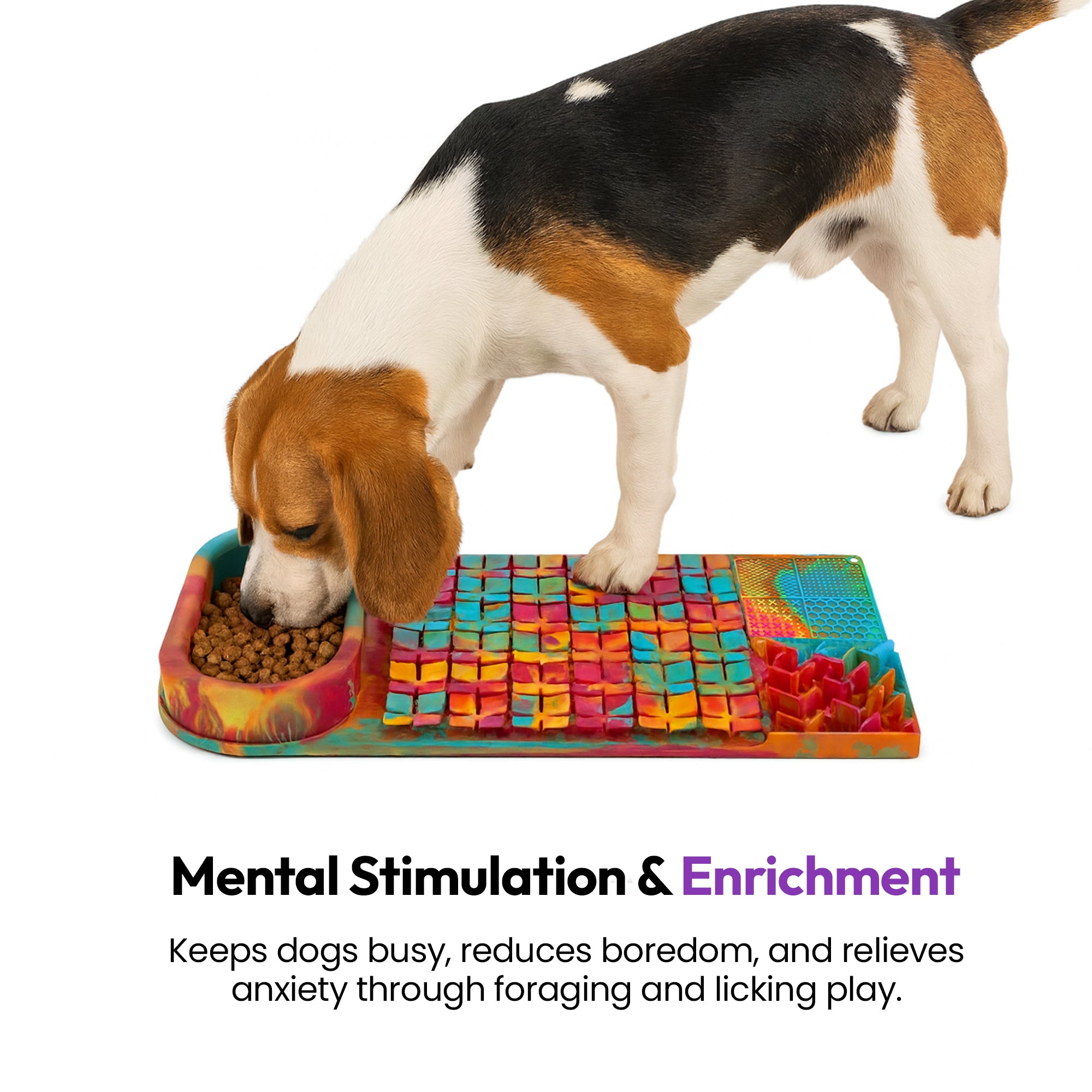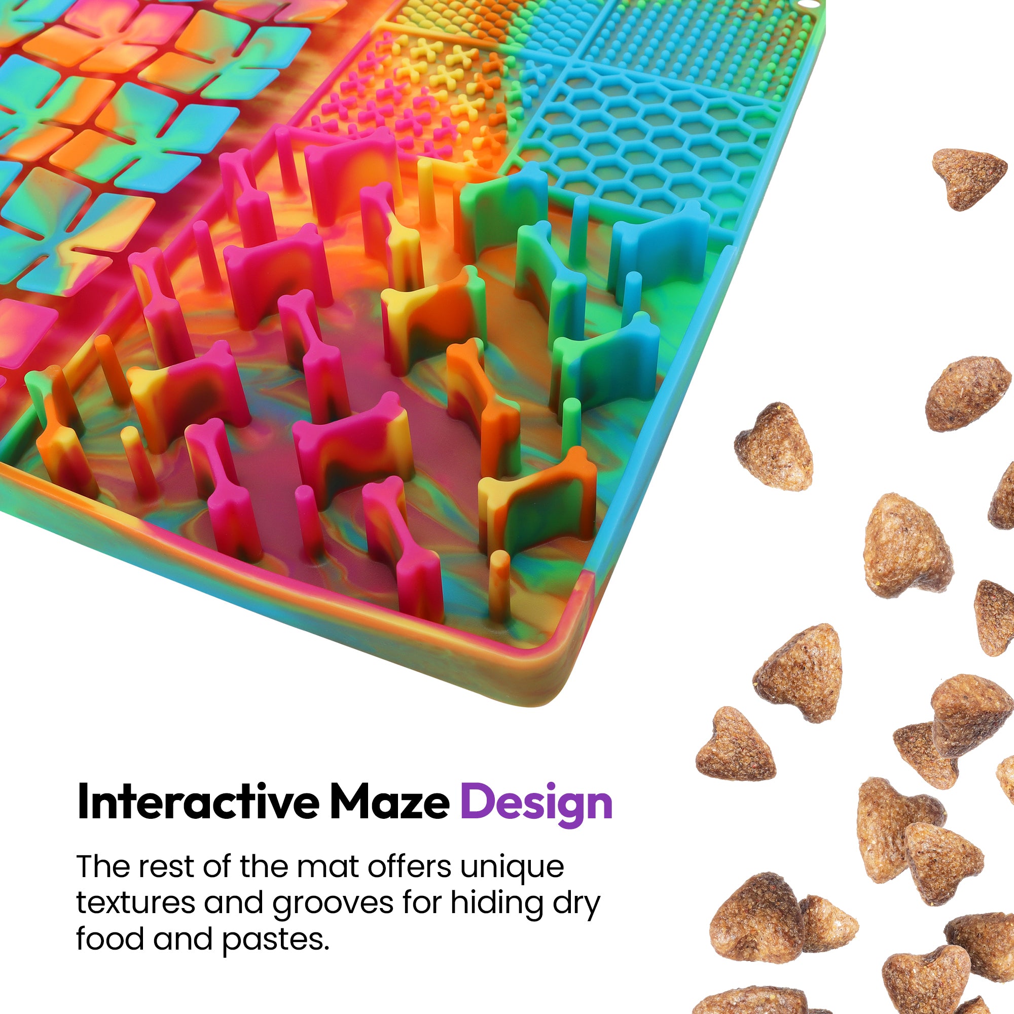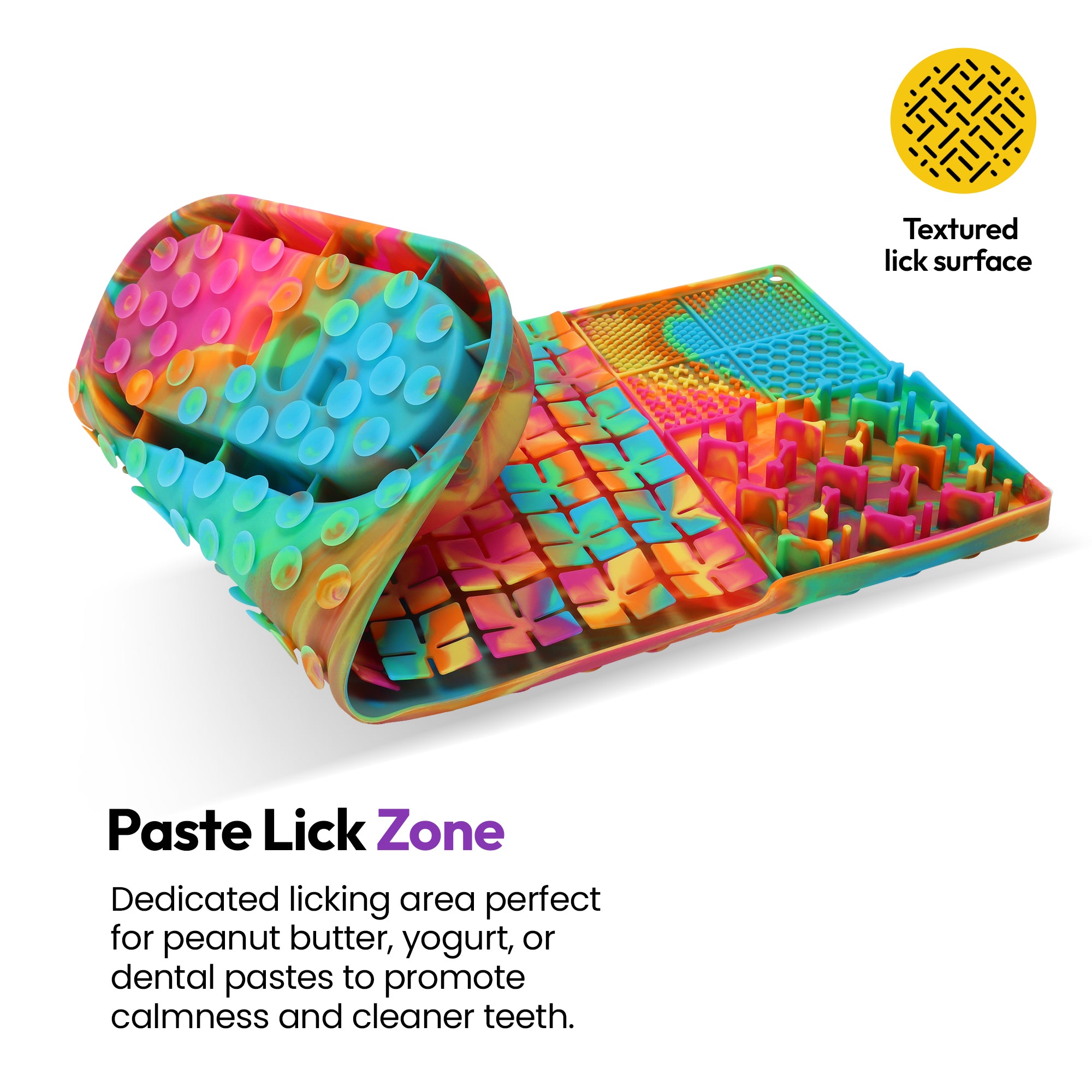Rainbow Licky Bowl Mat – Slow Feeder Dog Bowl & Interactive Food Mat – Food-Grade Silicone, Lick Zones & Suction Cups