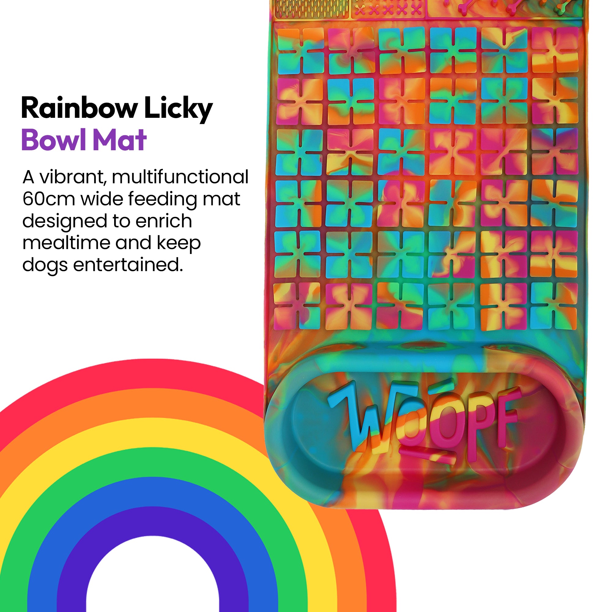 🌈 WOOPF Rainbow Licky Bowl Mat – Enrichment, Calm & Healthy Feeding Combined 🐾