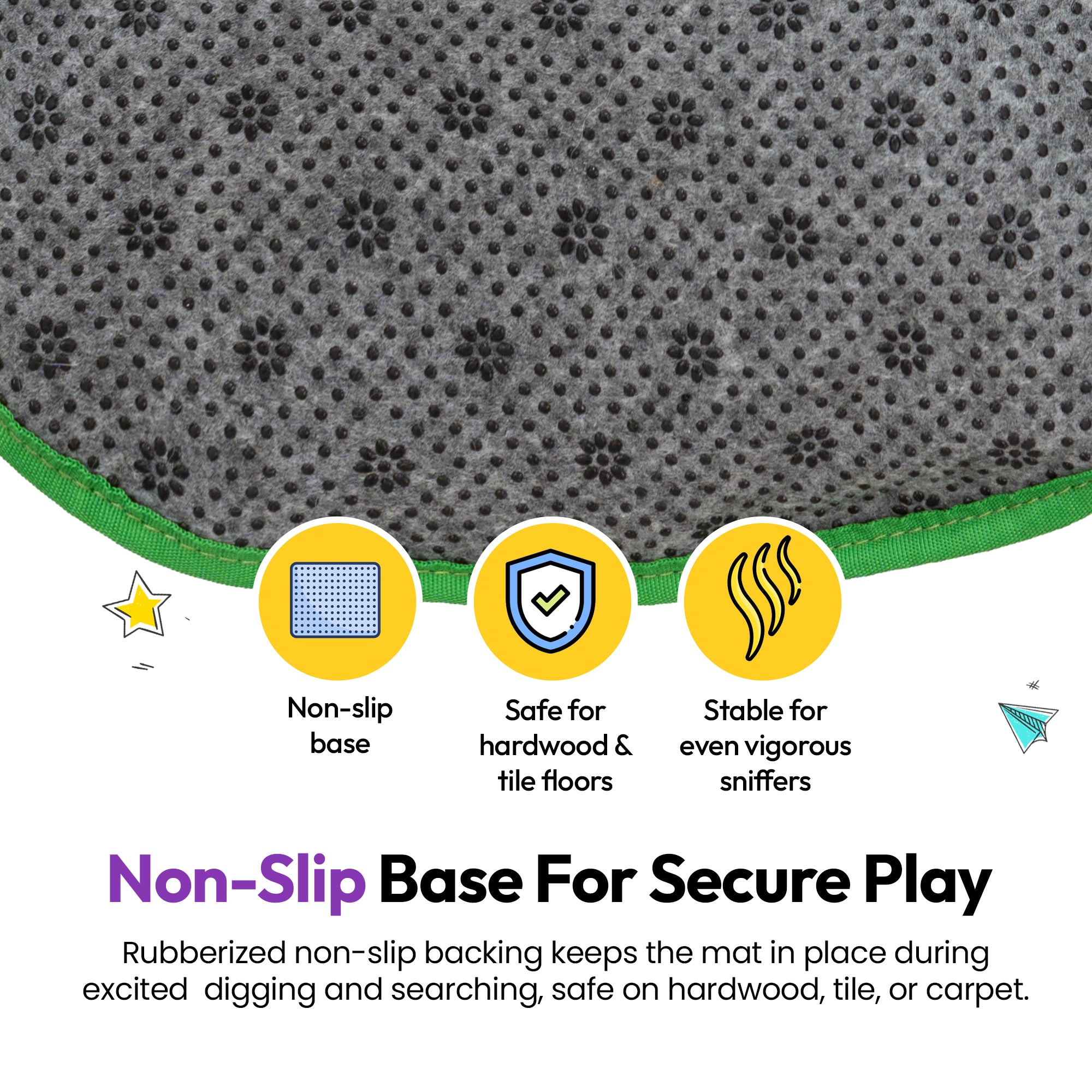 A flat, anti-slip foraging mat designed for slower meals, deeper scent work, and anxiety reduction. Ideal for daily routines, training, or calming enrichment sessions.